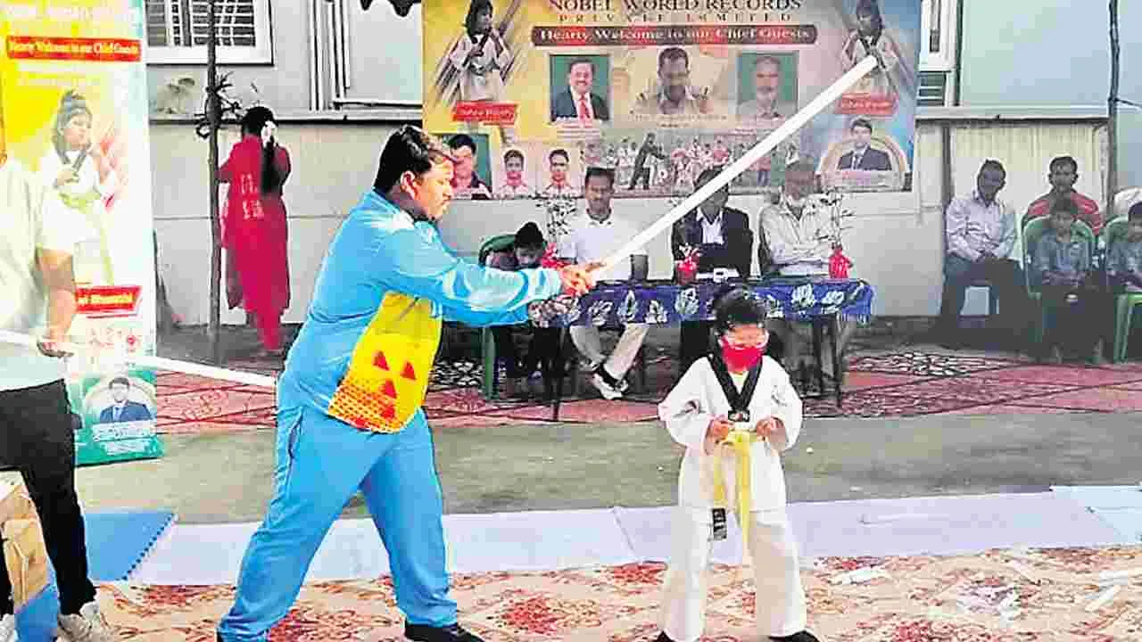 తాడిపత్రి, నవంబరు9(ఆంధ్రజ్యోతి): అనంతపురం జిల్లా తాడిపత్రికి చెందిన తొమ్మిదేళ్ల బాలిక యశస్విభారతి 6.9 నిమిషాల్లో తలపై 100 ట్యూబ్లైట్లను పగులగొట్టించుకుని ఔరా అనిపించింది. యశస్వి స్థానికంగా ఓ ప్రైవేటు పాఠశాలలో 4వ తరగతి చదువుతోంది. నోబెల్ బుక్ ఆఫ్ వరల్డ్ రికార్డ్స్లో చోటు దక్కించుకునే లక్ష్యంతో తాడిపత్రిలోని కృష్ణాపురం జీరో రోడ్డులో ఆదివారం ఈ ఫీట్ చేసింది. యశస్విభారతి తల్లిదండ్రులు రంగనాథ, పద్మజ, పలువురు ప్రముఖులు పాల్గొన్నారు. వీడియోలు, ఫొటోలను నోబుల్బుక్ ఆఫ్ వరల్డ్స్ రికార్డ్స్ కమిటీకి పంపనున్నట్లు బాలిక తల్లిదండ్రులు తెలిపారు.
