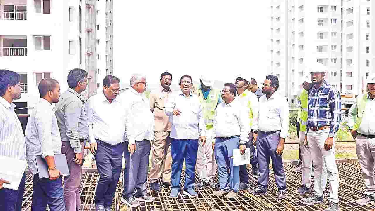 గుంటూరు, సెప్టెంబరు 3 (ఆంధ్రజ్యోతి): వచ్చే మార్చి నెలాఖరు నాటికి అమరావతిలోని అధికారులు, ఉద్యోగుల భవనాలను సిద్ధం చేస్తామని పురపాలక శాఖ మంత్రి పి. నారాయణ తెలిపారు. ‘‘అసలు అమరావతిలో పనులేమీ జరగడం లేదని, గ్రాఫిక్స్ మాత్రం చూపిస్తున్నారంటూ తప్పుడు ప్రచారం చేస్తున్న వారిని ప్రజలు క్షమించరు. వారు క్షేత్రస్థాయికి వచ్చి పరిస్థితిని చూడాలి.’’ అని ఆయ న సవాలు విసిరారు. రాజధానిలోని నేలపాడులో నిర్మాణంలో ఉన్న గెజిటెడ్ ఆఫీసర్స్ టైప్-1, టైప్ -2 భవనాలతో పాటు గ్రూప్-డి ఉద్యోగుల భవనాలను బుధవారం ఆయన పరిశీలించారు. ప్రస్తుతం పనులు ఏ దశలో ఉన్నాయి...ఎప్పటికల్లా పూర్తవుతాయి... భవనాలతోపాటు ఇతర మౌళిక వసతుల కల్పన ఎప్పటికి పూర్తవుతుందనే వివరాలను సీఆర్డీయే ఇంజనీరింగ్ అధికారులను, కాంట్రాక్ట్ సంస్థ ప్రతినిధులను అడిగి తెలుసుకున్నారు. అనంతరం మంత్రి మీడియాతో మాట్లాడారు. అమరావతి అత్యంత సురక్షితమైన రాజధాని అని ఆయన మరోసారి స్పష్టం చేశారు. అయితే, కొంతమంది పనిగట్టుకుని మరీ అమరావతిపై దుష్ఫ్రచారం చేస్తున్నారని మండిపడ్డారు. ‘‘అమరావతిలో ప్రస్తుతం 13 వేల మంది ఉద్యోగులు, కార్మికులు పనులు చేస్తున్నారు. సుమారు 2500 వరకూ ప్రొక్లెయిన్లు, జేసీబీలు, ఇతర యంత్రాలు పని చేస్తున్నాయి. గెజిటెడ్ ఆఫీసర్స్ టైప్-1 భవనాల్లో 4 టవర్లలోని 384 ఫ్లాట్ల నిర్మాణ పనులు వేగంగా జరుగుతున్నాయి. టైప్ -2 భవనాల్లో మరో 4 టవర్లలో 336 ఫ్లాట్లు, గ్రూప్-డి ఉద్యోగుల కొరకు మొత్తం 6 టవర్లలో 720 ఫ్లాట్ల నిర్మాణం వేగంగా జరుగుతోంది. మొత్తం 1,440 ఇళ్ల నిర్మాణాలు దాదాపు తుది దశకు చేరుకున్నాయి. సీవరేజ్ ప్లాంట్ నిర్మాణం కూడా వేగంగా జరుగుతోంది. అన్ని భవనాలు మార్చి నెలాఖరులోగా పూర్తి చేేసలా ప్రణాళికాబద్ధంగా వెళ్తున్నాం. వీటిలో 50 శాతం ఇళ్లు అక్టోబరు రెండు నాటికి పూర్తవుతాయి.’’ అని నారాయణ వివరించారు.