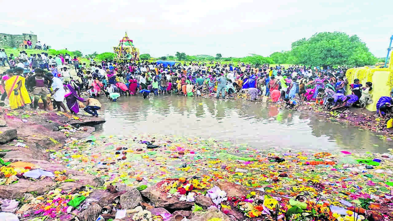 రాయదుర్గంరూరల్, ఆగస్టు 18(ఆంధ్రజ్యోతి): మండలంలోని టీ వీరాపురంలో డోఽణగంగమ్మ జాతర మహోత్సవాన్ని సోమవారం భక్తిశ్రద్ధలతో నిర్వహించారు. ఉదయాన్నే అమ్మవారికి గంగపూజ, పంచామృతాభిషేకం, కుంకుమార్చన, పుష్పాలంకరణ, వసా్త్రలంకరణ చేశారు. మధ్యాహ్నం అమ్మవారిని రథంలో ఊరేగింపు నిర్వహించారు. ఎమ్మెల్యే కాలవ శ్రీనివాసులు ప్రత్యేక పూజలు నిర్వహించారు. వేలాది మంది భక్తులు ఇందులో పాల్గొన్నారు. ఏటా శ్రావణమాసం ముగింపు రోజున అమ్మవారికి ఈ జాతర కార్యక్రమాన్ని నిర్వహించడం ఆనవాయితీ వస్తోందని గ్రామ పెద్దలు తెలిపారు.