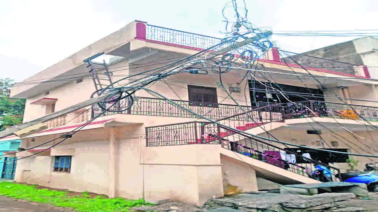 ఇంటిపై కూలిన విద్యుత స్తంభం
