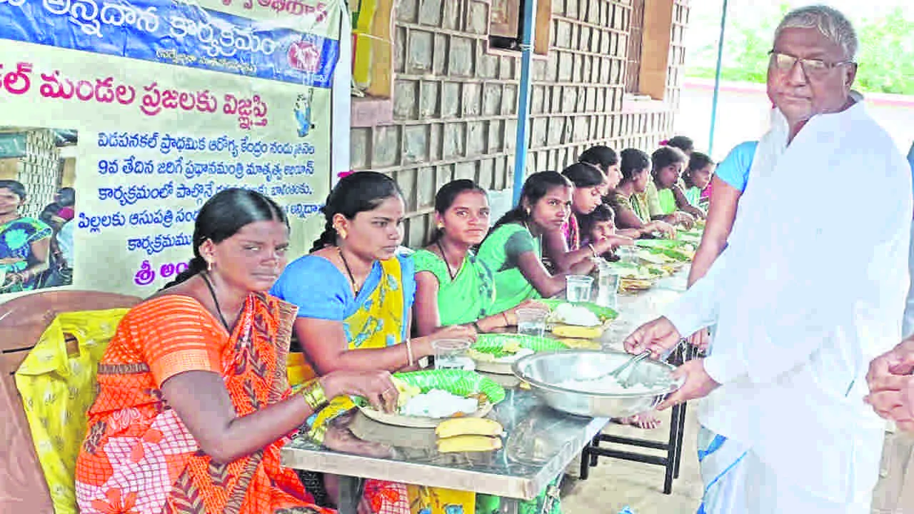 విడపనకల్లు, సెప్టెంబరు 9(ఆంధ్రజ్యోతి): స్థానిక ప్రాథమిక ఆరోగ్య కేంద్రంలో ప్రతి నెలా తొమ్మిదవ తేదీన ప్రధాన మంత్రి సురక్షిత మాతృత్వ అభియాన కార్యక్రమంలో భాగంగా గర్భిణులకు వైద్య పరీక్షలు నిర్వహిస్తున్నారు. మంగళవారం కూడా గర్భిణులకు వైద్య పరీక్షలు నిర్వహించారు. ఈ పరీక్షల కోసం మండలంలోని పలు గ్రామాల నుంచి వచ్చిన గర్భిణులకు వేల్పుమడుగు గ్రామానికి చెందిన అంగడి చెన్నప్ప భోజన సౌకర్యం కల్పించారు. ఇలా ఈయన ఆరు సంవత్సరాలుగా భోజన సౌకర్యం కల్పిస్తున్నారు.