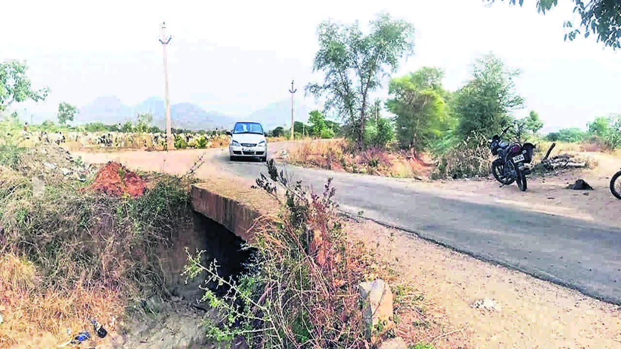 కొత్తచెరువు, మే 1(ఆంధ్రజ్యోతి): మండలంలోని నారేపల్లి సమీపంలోని బ్రిడ్జికి రక్షణ గోడ లేకపోవడంతో తరచూ ప్రమాదాలు జరుగుతున్నాయి. బుచ్చయ్యగారిపల్లి క్రాస్ నుంచి నారేపల్లికి వచ్చే రహదారిలోని కాలువపై బ్రిడ్జికి ఇరువైపులా రక్షణ గోడ లేదు. పైగా ఈ కాలువ టర్నింగ్లో ఉండటంతో పలు ప్రమాదాలు జరుగుతున్నాయి. దీంతో రాత్రి సమయాల్లో కొత్తగా ఎవరైనా వాహనదారులు వస్తే.. రోడ్డు సమాంతరంగా ఉందని కాలువల్లోకి దూసుకెళ్లిన సంఘటనలు అనేకం. ఇటీవల నారేపల్లి మీదుగా వెల్దుర్తికి వెళ్తున్న ఆటో అదుపు తప్పి కాలువలోకి పడటంతో పలువురు గాయపడ్డారు. ఇప్పటికైనా ఆర్అండ్బీ, పంచాయతీ రాజ్ అధికారులు స్పందించి.. రక్షణ గోడ ఏర్పాటు చేసేలా చర్యలు తీసుకోవాలని వాహనదారులు కోరుతున్నారు.