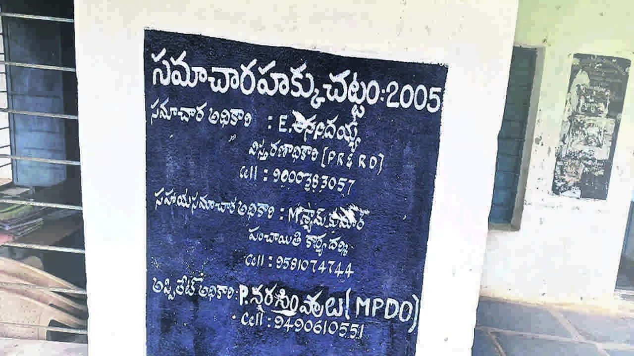 మండలపరిధిలోని కోటపల్లి గ్రామ సచివాలయం వద్ద సమాచార హక్కు చట్టం బోర్టును అఽధికారులు ఏర్పాటు చేశారు. అందులో ఏడాది క్రితం ఉద్యోగ విరమణ పొందిన అధికారుల పేర్లు, బదిలీ అయిన అధికారుల పేర్లే ఇప్పటికీ కనిపిస్తు న్నాయి. ఏడాది కాలంగా పేర్లను మార్చకపోవడాన్ని చూసి పలువురు ఆశ్చర్యం, అసంతృప్తి వ్యక్తం చేస్తున్నారు.