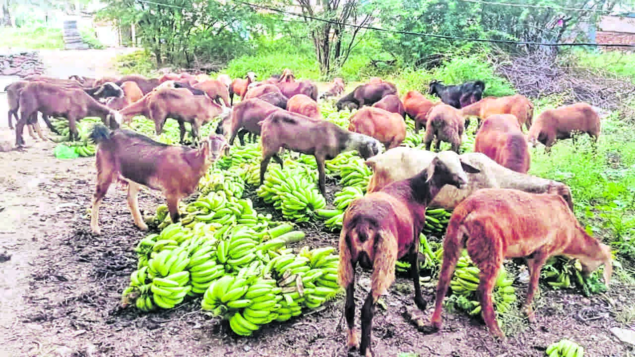 యాడికి, నవంబరు 11(ఆంధ్రజ్యోతి): మండలంలో పలువురు రైతులు ఏడాదిగా రూ. లక్షల వెచ్చించి.. అరటిని సాగు చేశారు. మహారాష్ట్రలో అరటి దిగుబడి ఎక్కువగా ఉండడం, అరబ్ దేశాలకు ఎగుమతులు తగ్గిపోవడంతో అరటి ధర దారుణంగా పడిపోయింది. దీంతో పలువురు రైతులు పంటను అలాగే వదిలేశారు. మరికొందరు పంటను పశువుల కోసం రోడ్డు పక్కన పడేస్తున్నారు. మండలంలోని రామరాజుపల్లి రైతు చరణ్ అరటి పంటను ట్రాక్టర్లో తరలించి మంగళవారం రోడ్డు పక్కన ఇలా పడేసి వెళ్లగా.. అటువైపు వెళుతున్న గొర్రెలు, మేకలు ఆ పంటను తినడం కనిపించింది.