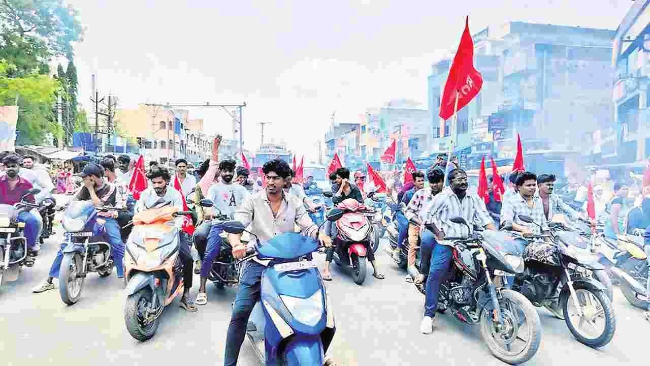 కదిరిఅర్బన, ఏప్రిల్ 20(ఆంధ్రజ్యోతి): ఆర్సీపీ రాష్ట్ర మహాసభలు మంగళవారం నుంచి మూడు రోజుల పాటు కదిరిలో నిర్వహిస్తున్నామని, వాటిని జయప్రదం చేయాలని జిల్లా కార్యదర్శి నాగప్ప పిలుపునిచ్చారు. ఈ మేరకు ఆదివారం పట్టణంలో మహాసభలపై బైక్ ర్యాలీ నిర్వహించారు. ఈ కార్యక్రమంలో గజ్జల శేఖర్, సుగుణమ్మ, అరుణ్కుమార్, రాజేష్ పాల్గొన్నారు.