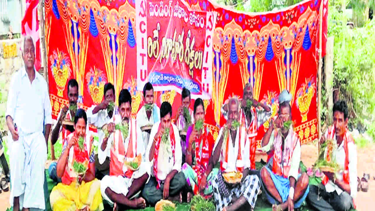 protest for salaries జీతాల కోసం పారిశుధ్య కార్మికుల రిలేదీక్షలు