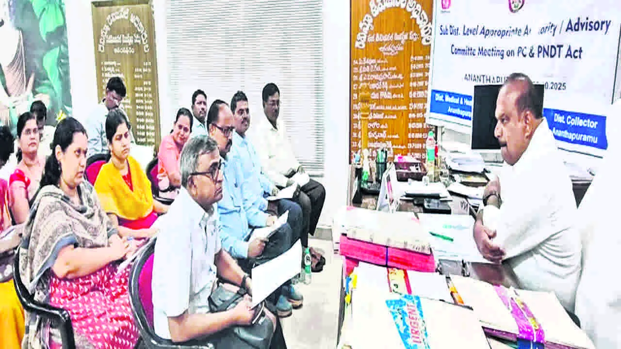 ఈ సందర్భంగా మాట్లాడుతూ.. స్కానింగ్ సెంటర్లలో డాక్టర్ రిక్విజేషన లేకున్నా, నిబంధనలు పాటించకున్నా తక్షణమే చర్యలు తీసుకోవాలని సూచించారు. ఐసీడీఎస్, వైద్యశాఖ సంయుక్తంగా పని చేస్తూ బాల్య వివాహాలపై ఇంటింటికీ అవగాహన కల్పించాలని ఆదేశించారు. కార్యక్రమంలో సర్వజన వైద్యశాల పీడియాట్రిక్స్ హెచఓడీ డాక్టర్ రవికుమార్, గైనకాలజిస్ట్ డాక్టర్ రేణుక, పేథాలజిస్ట్ డాక్టర్ శ్రీధర్, సీఐ శాంతిలాల్ పాల్గొన్నారు.