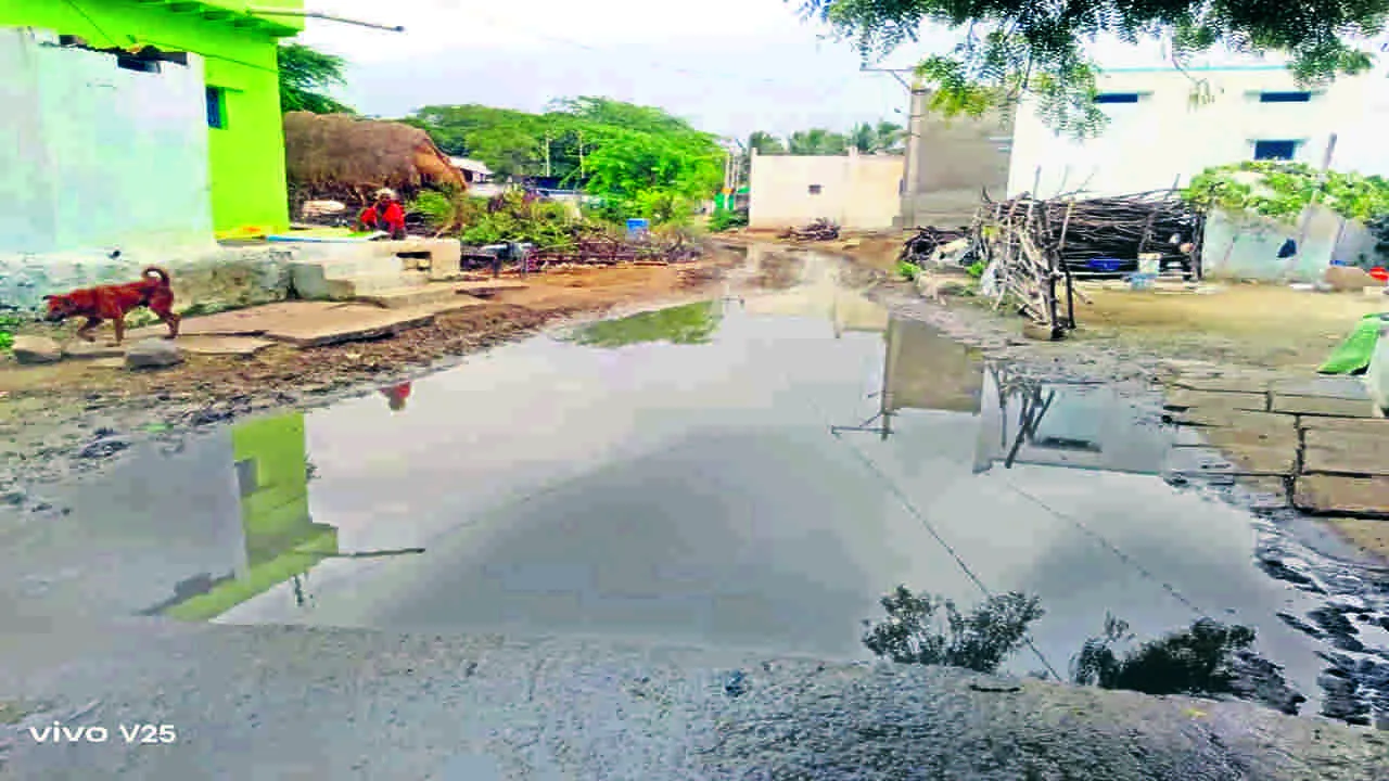 మండలంలోని సిద్ధరాంపురంలో మురుగు కాలువలు లేకపోవడంతో మురుగునీరు ఇలా రోడ్లపైనే నిల్వ ఉంటోంది.