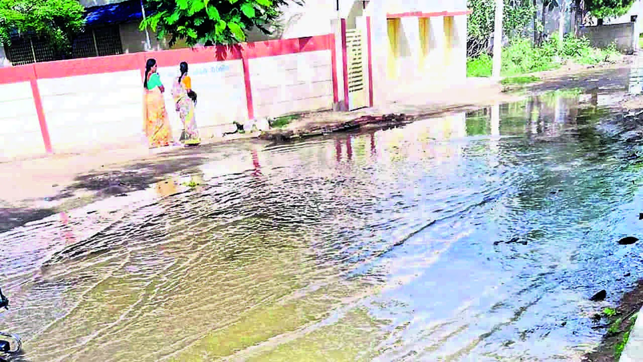 Sewage రోడ్డుపై మురుగునీరు