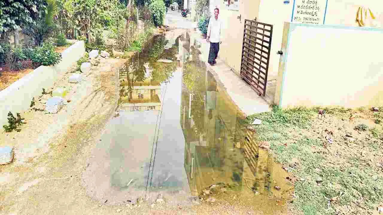 స్థానిక హిందూ శ్మశాన వాటిక సమీపంలోని వీధుల్లో 15 రోజులుగా మురుగునీరు నిల్వ ఉంటోంది.
