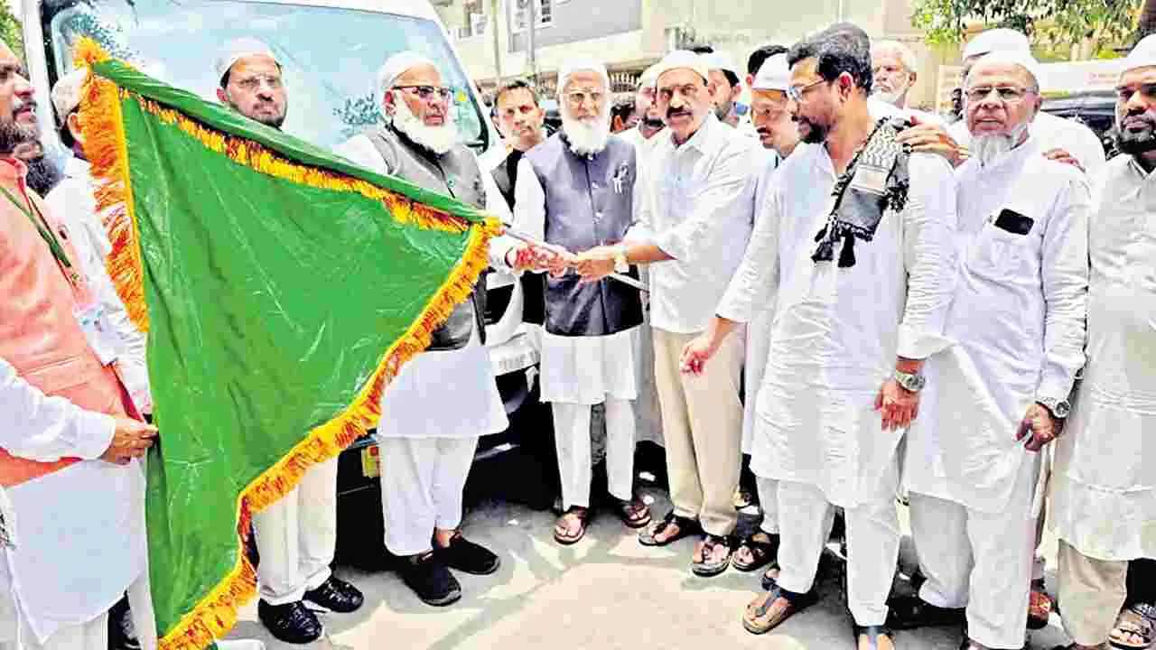 అమరావతి, మే 19(ఆంధ్రజ్యోతి): రాష్ట్ర హజ్ యాత్రికులందరికీ ఎలాంటి ఇబ్బందులూ లేకుండా రాష్ట్ర ప్రభుత్వం అత్యంత పగడ్బందీగా ఏర్పాట్లు పూర్తి చేసి పర్యవేక్షిస్తున్నట్లు రాష్ట్ర న్యాయ మైనార్టీ సంక్షేమశాఖ మంత్రి ఎన్ఎండీ ఫరూక్ తెలిపారు. ఏపీ నుంచి రెండవ విడతలో 906 మంది హజ్ యాత్రికులు హై దరాబాద్ ఎంబార్కేషన్ నుంచి సోమ, మంగళవారాల్లో మూడు విమానాల్లో జెడ్డాకు వె ళుతున్నారు. వీరి కోసం ఏపీ మైనార్టీ మంత్రిత్వశాఖ, హజ్ కమిటీ ఆధ్వర్యంలో హైదరాబాద్ లకడీకాపూల్లోని షా ఫంక్షన్ ప్లాజాలో ఫ్లాగ్ ఆఫ్ కార్యక్రమాన్ని నిర్వహించారు. మంత్రి ఎన్ఎండీ ఫరూక్, మైనార్టీ సలహాదారు ఎంఏ షరీఫ్, హజ్ కమిటీ చైర్మన్ హసన్ బాషా, హజ్ కమిటీ సభ్యులు తదితరులు జెండా ఊపి రెండో విడత హజ్యాత్రను ప్రారంభించారు. యాత్రికులకు శుభాకాంక్షలు తెలిపారు. మంత్రి ఫరూక్ మాట్లాడుతూ ఈ ఏడాది ఏపీ నుంచి మొత్తం 1630 మంది హజ్యాత్రకు వెళ్తున్నట్టు తెలిపారు.