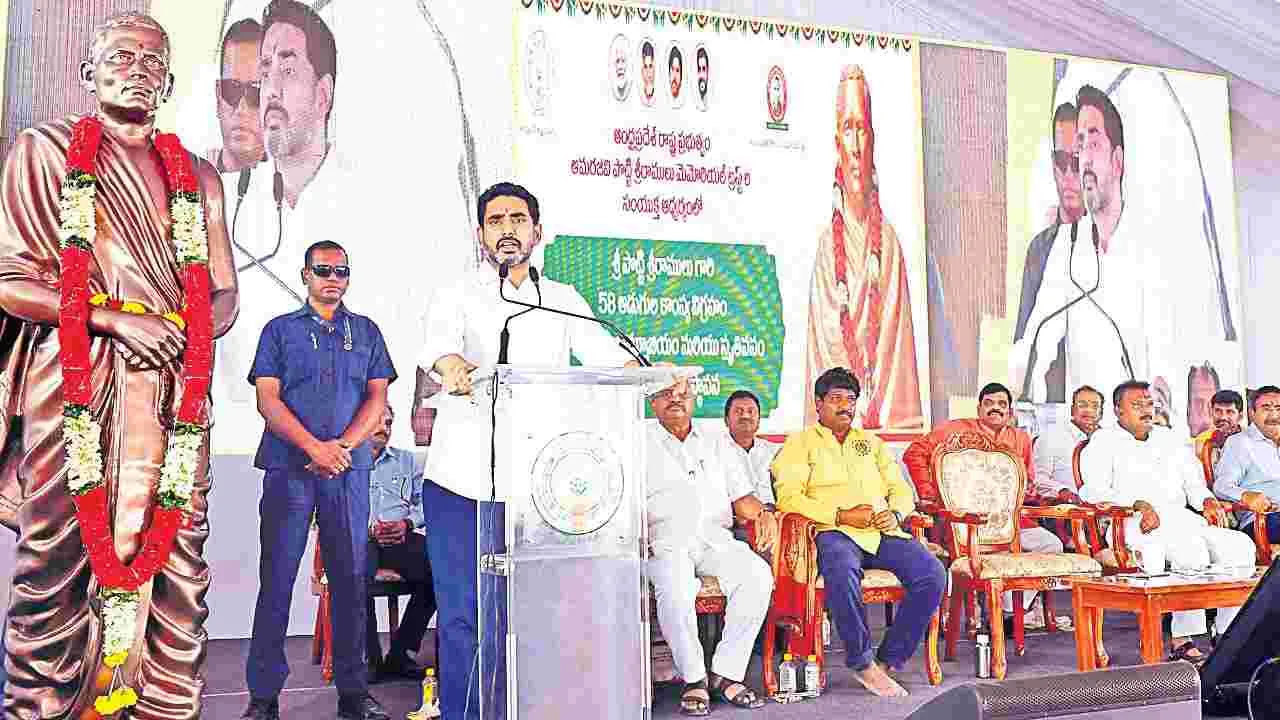 తుళ్లూరు సెప్టెంబరు 3(ఆంధ్రజ్యోతి): ప్రత్యేక ఆంధ్ర రాష్ట్రం కోసం ప్రాణత్యాగం చేసి కోట్లాది మంది తెలుగువారికి దారిచూపిన వ్యక్తి పొట్టి శ్రీరాములు అని మంత్రి లోకేశ్ అన్నారు. ప్రభుత్వం, అమరజీవి పొట్టి శ్రీరాములు మెమోరియల్ ట్రస్ట్ సంయుక్త ఆధ్వర్యంలో అమరావతిలోని తుళ్లూరు, పెదపరిమి మధ్య 6.8 ఎకరాల విస్తీర్ణంలో 58 అడుగుల పొట్టి శ్రీరాములు కాంస్య విగ్రహంతో పాటు ఆడిటోరియం, స్మృతివనం నిర్మాణాలకు మంత్రి బుధవారం శంకుస్థాపన చేశారు. ఈ సందర్భంగా ఏర్పాటు చేసిన సభలో లోకేశ్ మాట్లాడుతూ పొట్టి శ్రీరాములు విగ్రహం ఏర్పాటుతో పాటు మొత్తం ప్రాజెక్టు పూర్తిచేసే బాధ్యత తీసుకోవాలని ఆర్యవైశ్య కార్పొరేషన్ చైర్మన్ డూండి రాకేశ్కు సూచించారు. వచ్చే మార్చి 16 నాటికి ప్రాజెక్టును పూర్తి చేస్తామని డూండి రాకేశ్ తెలిపారు. టీజీవీ గ్రూప్ తరపున విగ్రహం ఏర్పాటకు మొదటి విరాళం రూ.కోటి అందిస్తున్నామని మంత్రి టీజీ భరత్ ప్రకటించారు. పొట్టి శ్రీరాములు వారసులు నలుగురిని శాలువాలతో లోకేశ్ సత్కరించారు మంత్రి పి.నారాయణ, ఎమ్మెల్యే తెనాలి శ్రావణ్ కుమార్, రాజధాని రైతులు, మహిళలు తదితరులు పాల్గొన్నారు.