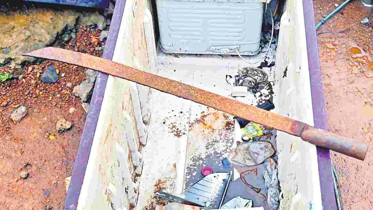 గంజాయి డాన్ అరవ కామాక్షి ఇంట్లో మారణాయుఽధం బయటపడింది. పాత ఫ్రిజ్లో పొడవాటి కత్తి కనిపించింది.
