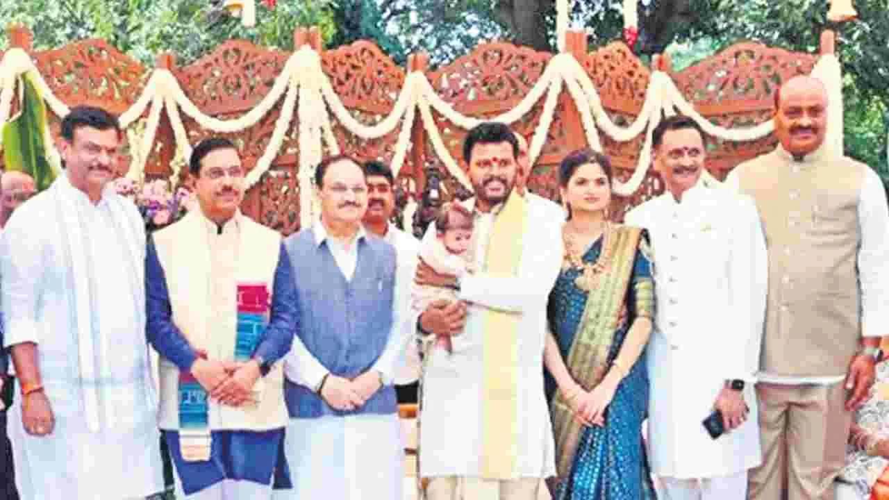 న్యూఢిల్లీ, అక్టోబరు 26 (ఆంధ్రజ్యోతి): కేంద్ర విమానయాన శాఖ మంత్రి కింజరాపు రామ్మోహన్ నాయుడి ఇంట సందడి నెలకొంది. ఆదివారం ఢిల్లీలోని కేంద్రమంత్రి అధికారిక నివాసంలో ఆయన కుమారుడి బారసాల వేడుక జరిగింది. ఈ కార్యక్రమానికి తెలంగాణ ముఖ్యమంత్రి రేవంత్ రెడ్డితోపాటు బీజేపీ జాతీయ అధ్యక్షుడు జేపీ నడ్డా, కేంద్ర మంత్రులు రాజ్నాథ్ సింగ్, నిర్మలా సీతారామన్, మనోహర్ లాల్ ఖట్టర్, ప్రహ్లోద్ జోషి, శ్రీనివాస వర్మ, ఏపీ అసెంబ్లీ స్పీకర్ అయ్యన్నపాత్రుడు, డిప్యూటీ స్పీకర్ రఘురామ కృష్ణరాజు, బీజేపీ ఏపీ అధ్యక్షుడు మాధవ్, రామ్మోహన్ బాబాయి మంత్రి అచ్చెన్నతోపాటు పలువురు మంత్రులు, ఎంపీలు, ఎమ్మెల్యేలు హాజరయ్యారు.