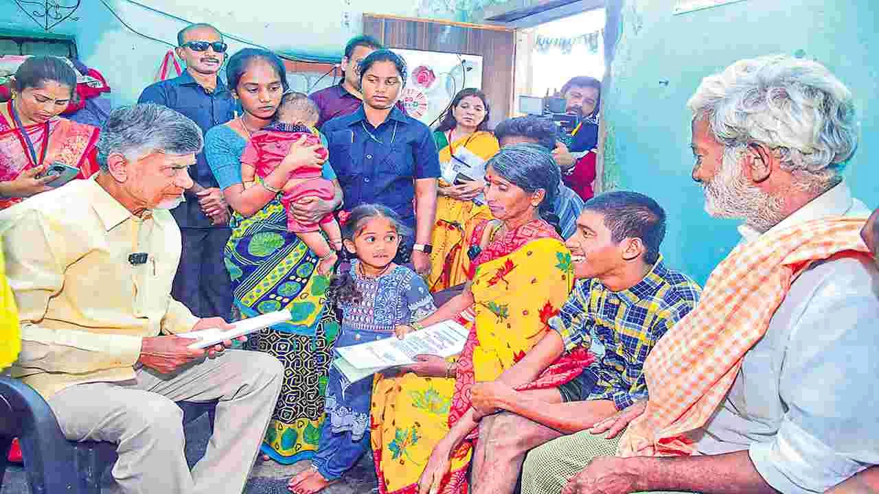 ఎన్టీఆర్ భరోసా పెన్షన్ కార్యక్రమంలో భాగంగా ప్రతి నెలా ఒక జిల్లాకు వెళ్లి స్వయంగా ముఖ్యమంత్రే పెన్షనర్ల చేతికి డబ్బులు అందిస్తున్నారు. శనివారం ఆయన రాయచోటి మండల కేంద్రమైన సంబేపల్లెలోని సంతగేటు కాలనీలో గోళ్ల చలపతి అనే వికలాంగ యువకుడికి పెన్షన్ అందజేశారు. ఇతనికి తండ్రి చనిపోయాడు. తల్లి కువైట్లో ఉంది. అమ్మ మ్మ సంరక్షణలో చలపతి ఉన్నాడు. ఇతనికి బ్యాటరీ ట్రైసైకిల్ ముఖ్యమంత్రి అందజేశారు. అనంతరం కొప్పుల మంగమ్మ అనే 82 వృద్ధురాలి ఇంటికి వెళ్లి పెన్షన్ను అందజేశారు. ఆమె కూతురు....ఇద్దరూ చనిపోయారు. కొడుకు బిడ్డ మంగమ్మ దగ్గరే చదువుకుంటోంది. పెన్షన్ డబ్బు చాలా ఆదుకుంటోందని ఆమె పేర్కొన్నారు. తనకు ఇల్లు లేదని ఆమె చెప్పడంతో.. అప్పటికప్పుడే మంజూరు చేశారు. అనారోగ్యంతో బాధపడుతున్న ఆమె మనుమరాలికి పెన్షన్ మంజూ రు చేశారు. సూర్యఘర్ కింద ఉచితంగా సోలార్ విద్యుత్ యూనిట్, దీపం-2 కింద ఉచిత గ్యాస్ కనెక్షన్ మంజూరు చేశారు. అనంతరం సీఎం చేతుల మీదుగా.. ఆరు ఆటోలను పంపిణీ చేశారు. సంబేపల్లె మండలంలో పలు గ్రామాల్లో అభివృద్ధి పనులకు శంకుస్థాపన శిలాఫలకాన్ని ఆవిష్కరించారు.