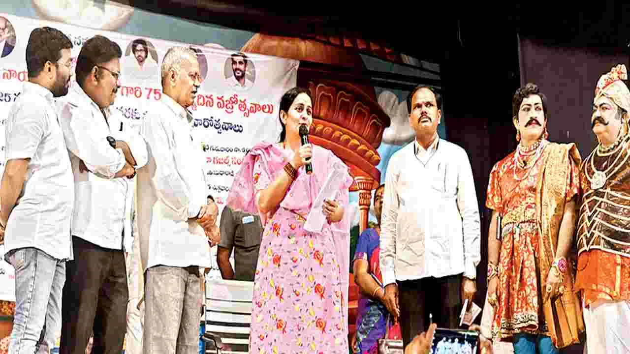 కర్నూలు కల్చరల్, ఏప్రిల్ 21 (ఆంధ్రజ్యోతి): రాష్ట్ర అభివృద్ధి, సంక్షేమమే లక్ష్యంగా సీఎం చంద్రబాబు నాయుడు పాలన సాగిస్తున్నారని నంద్యాల ఎంపీ బైరెడ్డి శబరి అన్నారు. నారా చంద్రబాబు నాయుడు 75వ జన్మదిన సందర్భంగా కర్నూలు నగరంలోని టీజీవీ కళాక్షేత్రంలో ‘చంద్రబాబు వజ్రోత్సవ జన్మదిన వారోత్సవాలు’ రెండోరోజు సోమవారం కొనసాగాయి. ఈ కార్యక్రమానికి హాజరైన బైరెడ్డి శబరి చంద్రబాబు చిత్రపటానికి క్షీరాభిషేకం చేసి జ్యోతి ప్రజ్వలన చేశారు. ఈ సందర్భంగా ఆమె మాట్లాడుతూ రాజకీయ నేతలు చంద్రబాబు జన్మదినోత్సవాన్ని ఒక్కరోజు జరిపి అలసిపోయారని, కానీ కర్నూలు కళాకారులు వారం రోజుల పాటు నిర్వహించడం అభినందనీయమన్నారు. గత ఐదేళ్లుగా కళాకారులకు ఎలాంటి పురస్కారాలు, సత్కారాలు లేవని, ఈ ఏడాది చంద్రబాబు కళాకారులను గుర్తించారన్నారు. కళాకారులను గౌరవిస్తే ప్రభుత్వం క్షేమంగా ఉంటుందని అన్నారు. టీజీవీ కళాక్షేత్రం అధ్యక్షులు, కళారత్న పురస్కార గ్రహీత పత్తి ఓబులయ్య మాట్లాడుతూ చంద్రబాబు జన్మదిన వజ్రోత్సవ వారోత్సవాలు అవధానంతో ప్రారంభించామని చెప్పారు. యువ ఎంపీ బైరెడ్డి శబరి పార్లమెంటులో రాష్ట్రంలోని రంగస్థల కళాకారుల సమస్యలను కేంద్ర ప్రభుత్వానికి వివరించాలని కోరారు. అనంతరం బైరెడ్డి శబరి ఇటీవల కందుకూరి పురస్కారాలు అందుకున్న రంగస్థల నటులు గాండ్ల లక్ష్మన్న, జీవీ శ్రీనివాసరెడ్డిలను ఘనంగా సత్కరించారు. అలాగే నాటక టెక్నీషియన్లు అయిన హార్మోనిస్టు బలరాముడు, తబలిస్టు మహేష్, కీబోర్డు ప్లేయర్ శ్రీనివాసాచారి, మేకప్మెన శ్రీనివాసులు, సురభి సంతోష్లను సత్కరించారు.