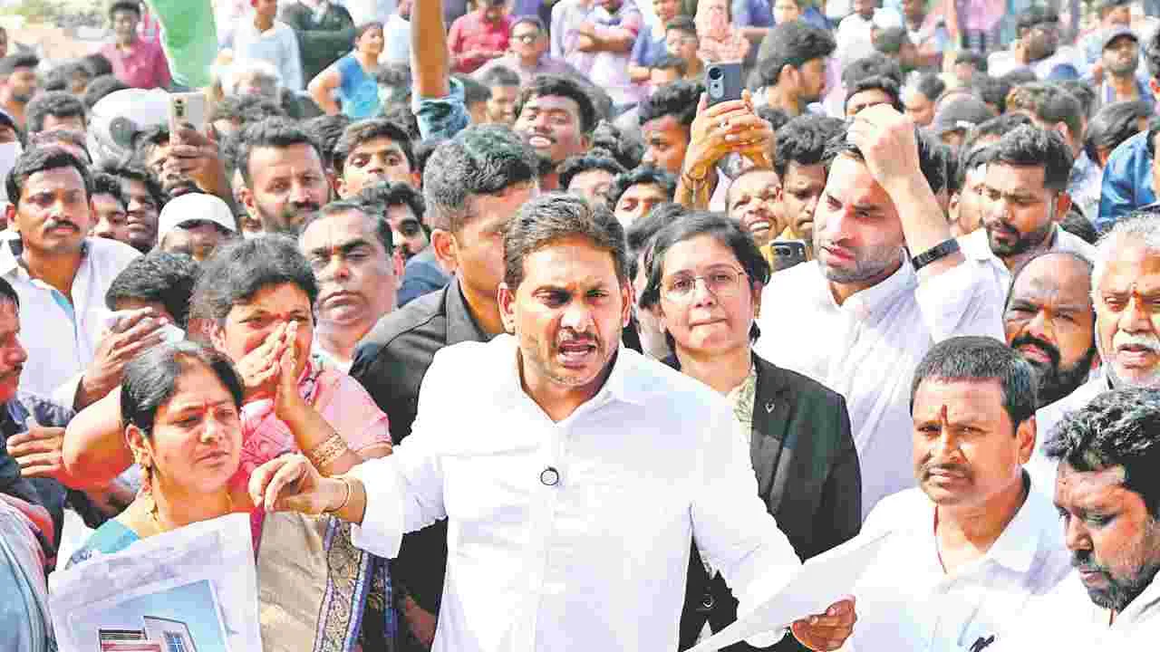జగన్ పర్యటనలో పలువురు నేతల నగదు, సెల్ఫోన్లు చోరీ అయ్యాయి. కరెంటు ఆఫీసు రోడ్డులో కార్యకర్తలను పోలీసులు అడ్డుకున్నారు. ముఖ్య నేతలు, ప్లాట్ల యజమానులు, వారి కుటుంబ సభ్యులను మాత్రమే శిబిరం వద్దకు అనుమతించారు. అయినా, కార్యకర్తలు తోసుకుంటూ శిబిరం వద్దకు చేరుకునే క్రమంలో కొందరు నేతల నగదు, సెల్ఫోన్లు చోరీకి గురయ్యాయి. ఓ వ్యాపారికి చెందిన రూ.35 వేల నగదు, మరో నలుగురి సెల్ఫోన్లు తస్కరణకు గురయ్యాయి.