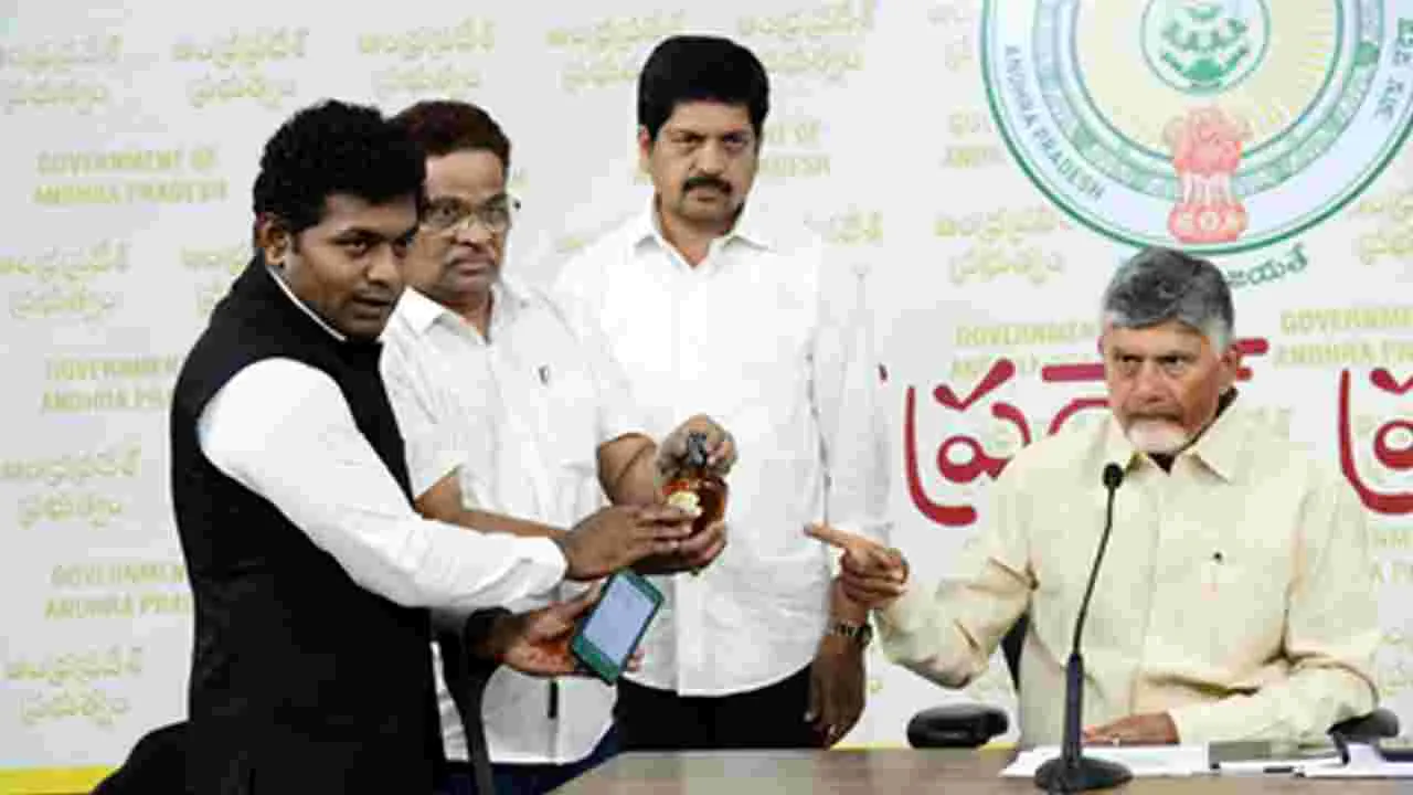 అమరావతి, అక్టోబరు 12 (ఆంధ్రజ్యోతి): నకిలీ మద్యం వ్యవహారంపై ప్రత్యేక దర్యాప్తు బృందాన్ని(సిట్) నియమించనున్నట్లు ముఖ్యమంత్రి చంద్రబాబు నాయుడు ప్రకటించారు. ఇది సాధారణంగా జరిగిన నేరం కాదని... భారీ కుట్ర ఉందని తెలిపారు. కుట్రదారులెవరో త్వరలోనే బయటపడుతుందని అన్నారు. ఇందులో దిగ్ర్భాంతికరమైన అంశాలు వెలుగు చూసే అవకాశముందని తెలిపారు. ఆదివారం సాయంత్రం ఉండవల్లిలోని నివాసంలో చంద్రబాబు మీడియాతో మాట్లాడారు. నకిలీ మద్యాన్ని గుర్తించేందుకు ‘ఎక్సైజ్ సురక్ష’ పేరుతో కొత్త యాప్ను ఆవిష్కరించారు. మద్యం సీసాపై ఉన్న బార్ కోడ్ను యాప్ ద్వారా స్కాన్ చేస్తే ఆ సీసా ఉత్పత్తి నుంచి అమ్మకం వరకు అన్ని వివరాలు తెలుస్తాయని... కోడ్ స్కాన్ కాకపోతే అది నకిలీగా నిర్ధారణ అవుతుందని వివరించారు. ఈ యాప్ పనిచేసే తీరుపై ప్రజెంటేషన్ కూడా ఇచ్చారు. మరిన్ని వివరాలు చంద్రబాబు మాటల్లోనే...