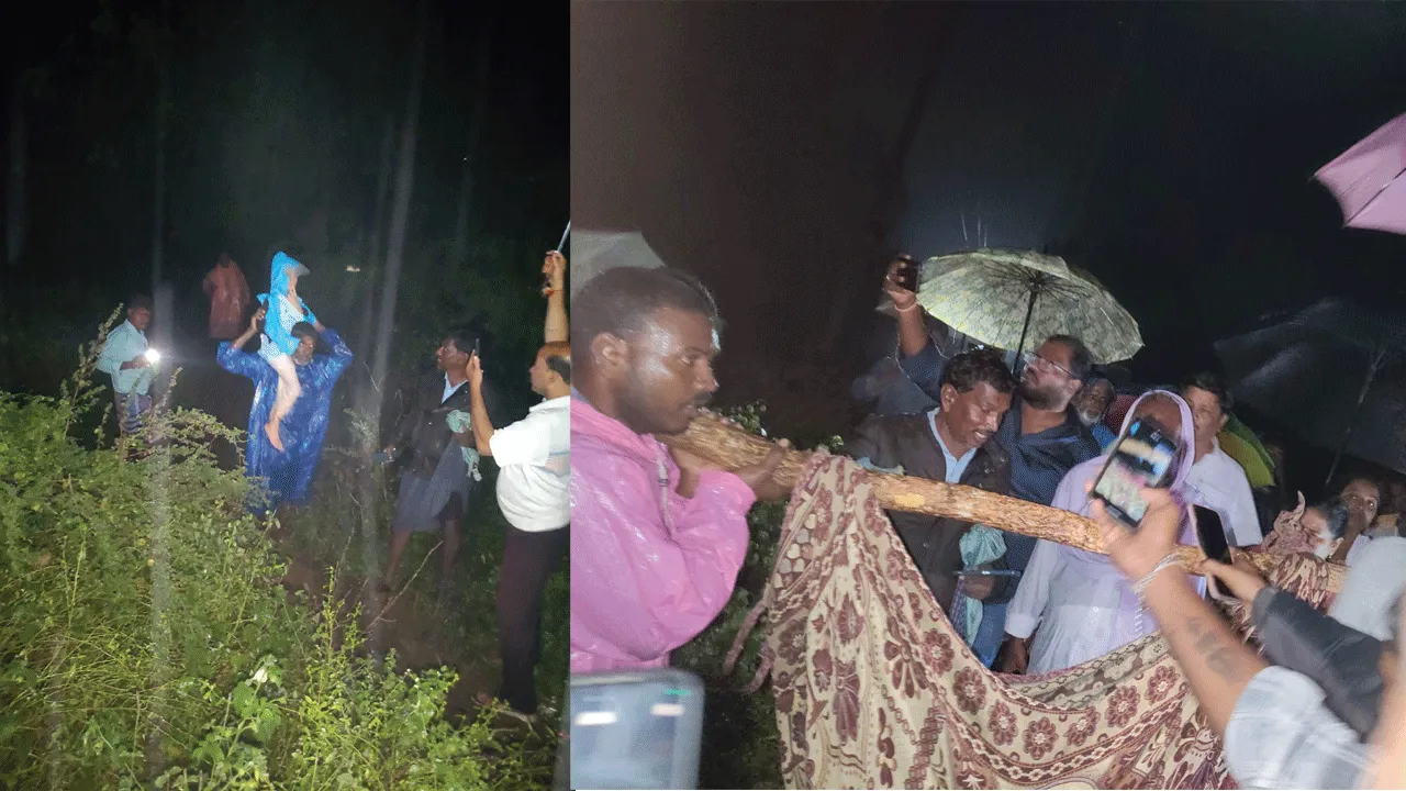 ఏర్పేడు, డిసెంబరు 2(ఆంధ్రజ్యోతి): ఏర్పేడు మండలం బత్తినయ్య కోనలోని భక్తకంఠేశ్వర ఆలయంలో సోమవారం రాత్రి నిద్ర చేస్తే పుణ్యం వస్తుందని భక్తుల నమ్మకం. శ్రీకాళహస్తికి చెందిన 45 మంది ఆదివారం ట్రాక్టర్లో ముసలిపేడుకు చేరుకున్నారు. ఆ రాత్రి అక్కడే పడుకుని, తెల్లవారుజామునే నడక మొదలు పెట్టారు. సోమవారం ఉదయం బత్తినయ్య కోనకు చేరుకున్నారు. పూజలు చేసుకుని 23మంది సోమవారం సాయంత్రానికి తిరిగి వచ్చేశారు. కార్తీక సోమవారం రాత్రి భక్తకంఠేశ్వరస్వామి సన్నిధిలో నిద్రిస్తే మంచిదని మిగిలిన 22మంది అక్కడే ఉండిపోయారు. మంగళవారం ఉదయం లేచి కొండ దిగడం మొదలు పెట్టారు. ఒకవైపు వాన.. మరోవైపు చలి.. దారిలో పంబ కాలువ ఉధ్రుతంగా ప్రవహిస్తుండటంతో దాట లేకపోయారు. ఫోన్లు పనిచేయకపోవడంతో ఇళ్లకు సమాచారమిచ్చే వీలు లేకపోయింది. సాయంత్రం అవుతున్నా వాగు ఉధ్రుతి తగ్గలేదు. ఆకలి.. భయం.. ఆందోళన పెరిగిపోయాయి. నిజానికి వాగు దాటకుండా అడవిలో నడిచి బత్తినయ్య గిరిజనకాలనీకి చేరుకునే వీలుంది. వీరికి ఆ అడవిమార్గం తెలియలేదు. వీరిలో జంగం దేవర కుమారుడి ఫోన్ ఒక తావులో పనిచేయడంతో ముసలిపేడుకి సమాచారం ఇచ్చాడు. ముసలిపేడువాసులు ఏర్పేడు రెవెన్యూ, పోలీసు అఽధికారులకు సమాచారం అందించారు. వెంటనే తహసీల్దారు భార్గవి, ఎంపీడీవో సౌభాగ్యం, ఎస్ఐ శ్రీకాంత్రెడ్డి సిబ్బందితో ముసలిపేడు గ్రామానికి చేరుకున్నారు. స్థానికుల సహకారంతో సహాయక చర్యలు చేపట్టారు. భక్తులు చిక్కుకుపోయిన వాగు వద్దకు చేరుకున్నారు. ఎక్స్కవేటర్సాయంతో అధికారులు కాలువను దాటడానికి ప్రయత్నించినా నీటి ఉధ్రుతి పెరుగుతూనే ఉండడంతో సాధ్యం కాలేదు. ఈ క్రమంలో నలుగురు స్థానికులు సాహసించి తాడు సాయంతో కాలువ దాటి అవతలకు వెళ్లారు. అప్పటికే చిక్కుకుపోయిన వారు తిండిలేక నీరసించిపోయి ఉన్నారు. వారిని అడవిదారిలో బత్తినయ్య గిరిజనకాలనీకి తీసుకువచ్చారు. నడవలేని స్థితిలో ఉన్న వృద్ధురాలిని డోలిలో కిందకు మోసుకువచ్చారు. 22 మందికీ పాపానాయుడుపేట ప్రాథమిక ఆరోగ్యకేంద్రంలో వైద్యపరీక్షలు చేశారు. కోన నుంచి ముసలిపేడుకు చేరుకున్న భక్తులకు టీడీపీ మండల అధ్యక్షుడు పేరం నాగరాజునాయుడు, మనోహర్నాయుడు, అంకయ్య ఆధ్వర్యంలో భోజనం అందించారు. అక్కడ్నుంచి సురక్షితంగా ఇళ్లకు చేర్చారు. తమను కాపాడిన అధికారులకు, ముసలిపేడు వాసులకు భక్తులు కృతజ్ఞతలు తెలిపారు.