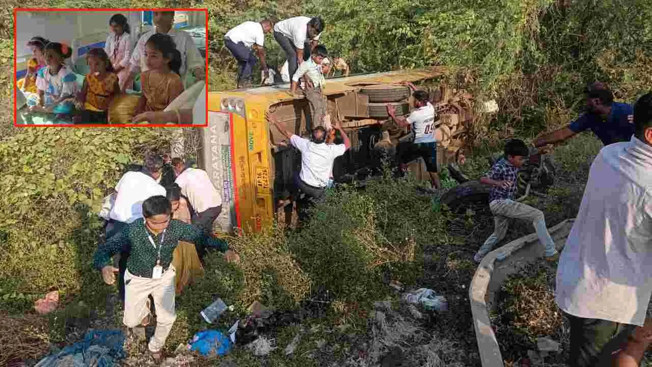 నవ్వుతూ, కేరింతలతో బస్సులో వస్తున్నారా చిన్నారి విద్యార్థులు. ఒక్కసారిగా బస్సు కుదుపుతో ఆందోళన చెందారు. ఆపై బోల్తాపడిన బస్సులో నుంచి చిన్నారుల హాహాకారాలు మిన్నంటాయి.