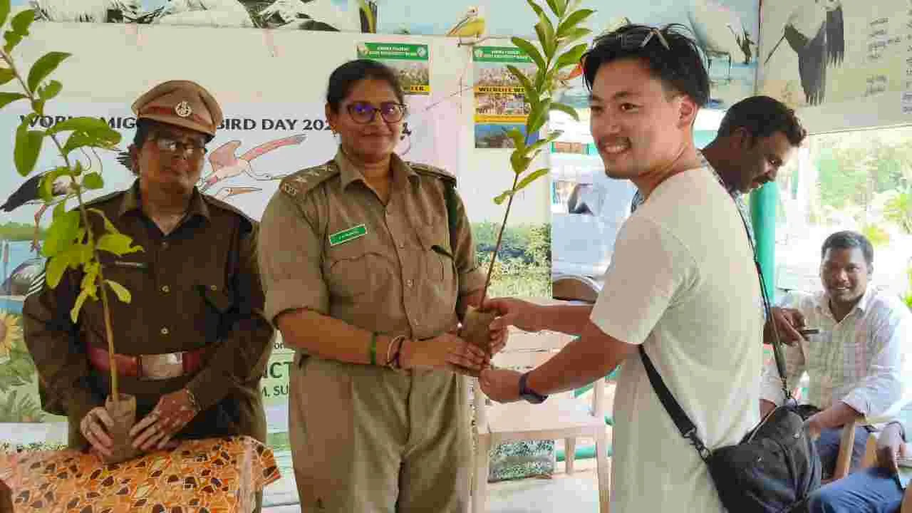 దొరవారిసత్రం, అక్టోబరు 11(ఆంధ్రజ్యోతి): నేలపట్టు పక్షుల కేంద్రంలో వన్యప్రాణి వారోత్సవాల్లో భాగంగా శనివారం విదేశీ పక్షుల దినోత్సవం నిర్వహించారు. దొరవారిసత్రం బీసీ గురుకుల పాఠశాలకు చెందిన 70 మంది విద్యార్ధులకు విదేశీ పక్షుల విడిదిపై నేలపట్టు ఎఫ్ఆర్వో సౌజన్య అవగాహన కల్పించారు. పక్షుల వల్ల ఈ ప్రాంతం ప్రపంచ పటంలో ప్రత్యేక గుర్తింపు పొందడం, అవి రైతాంగానికి చేసే మేలు గురించి వివరించారు. పక్షుల జీవన విధానంపై విద్యార్ధులకు క్విజ్ పోటీలు నిర్వహించారు. గెలుపొందిన వారికి బహుమతులు అందించారు. శ్రీసిటీలో పనిచేసే నలుగురు జర్మనీ దేశస్థులు పక్షుల కేంద్రాన్ని పరిశీలించారు. పక్షుల విడిది ఇంకా మొదలు కాలేదని, ఈ వారంలో వచ్చే అవకాశాలున్నాయని వన్యప్రాణి సంరక్షణశాఖ అధికారులు వారికి తెలియజేశారు. కంపెనీ ఆవరణలో నాటాలని ఎఫ్ఆర్వో వారికి జమ్మి చెట్టు మొక్కలను అందజేశారు. ఈ కార్యక్రమంలో స్థానిక ఎఫ్ఎ్సవో బాలయ్య, ఎఫ్బీవో రాజేశ్వరి, టూరిజం గైడ్ హుస్సేన్ పాల్గొన్నారు.