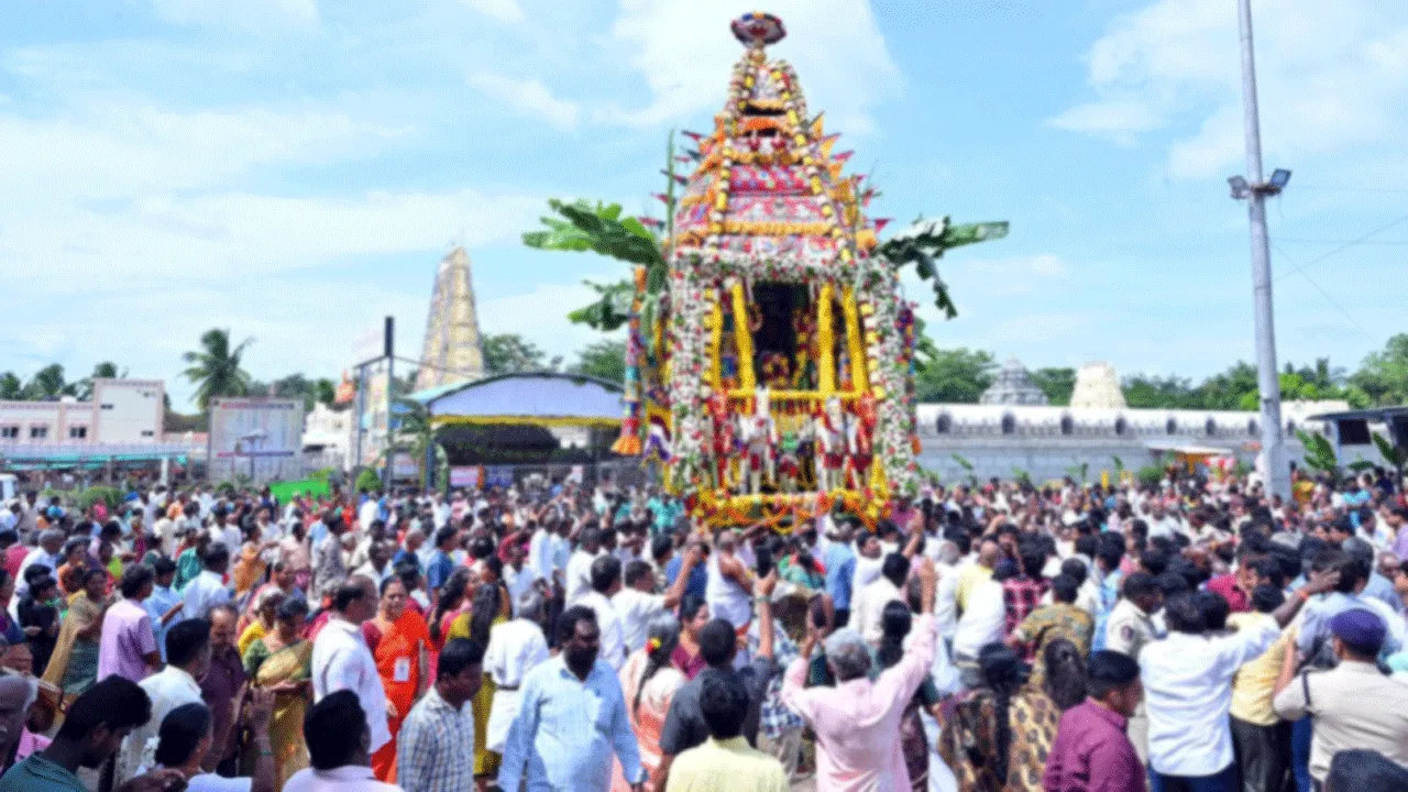 ఐరాల(కాణిపాకం), సెప్టెంబరు 3 (ఆంధ్రజ్యోతి): కాణిపాకంలో నిర్వహిస్తున్న బ్రహ్మోత్సవాల్లో బుధవారం మధ్యాహ్నం వరసిద్ధుడికి రథోత్సవాన్ని వైభవంగా నిర్వహించారు.కాకర్లవారిపల్లెకు చెందిన కీర్తిశేషులు ఎత్తిరాజులునాయుడు,శివప్రసాద్ జ్ఞాపకార్థం మీనాకుమారి, కాణిపాకానికి చెందిన మాజీ వీఎం పూర్ణచంద్రారెడ్డి కుటుంబ సభ్యులు, మాజీ వీఎం కీర్తి శేషులు చంద్రశేఖరరెడ్డి జ్ఞాపకార్థం ఆయన కుమారుడు హరిప్రసాదరెడ్డి ఉభయదారులుగా వ్యవహిరించారు. ఉదయం మూల విరాట్కు ఘనంగా అభిషేకం నిర్వహించాక అలంకార మండపంలో సిద్ధి,బుద్ధి సమేత వరసిద్ధి వినాయక స్వామి ఉత్సవ విగ్రహాలకు పూజాది కార్యక్రమాలు నిర్వహించారు. అనంతరం బ్రహ్మరథంపై ఆశీనులను కావించి ఉదయం 7.30 గంటల నుంచి 8.30 గంటల మధ్య రఽథాన్ని భక్తులు, ఉభయదారులు కొంత దూరం లాగి భక్తుల దర్శనార్థం ఉంచారు. జిల్లా నలుమూలల నుంచి విచ్చేసిన భక్తులు బ్రహ్మరథంపై ఉప్పు, బొరుగులు, మిరియాలు, చిల్లర నాణస్త్రలు చల్లి, కొబ్బరి కాయలు సమర్పించి, కర్పూర హారతులతో మొక్కులు తీర్చుకున్నారు.రథోత్సవాన్ని పురస్కరించుకొని ఆలయంలో పుష్పాలంకరణలు, వివిధ రకాల దేవతామూర్తుల ప్రతిమలు భక్తులను ఎంతగానో ఆకట్టుకున్నాయి. రథోత్సవ సమయంలో ఆలయ సిబ్బంది ధరించిన సైనికుల వేషధారణలు, కీలు గుర్రాలు ఆకర్షించాయి.అశేష భక్తజనం నడుమ మధ్యాహ్నం 3 గంటల సమయంలో రథాన్ని కాణిపాకం పురవీధుల్లో ఊరేగించారు.ఈవో పెంచలకిషోర్, ఈఈ వెంకటనారాయణ, ఏఈవోలు, ఎస్వీ కృష్ణారెడ్డి, రవీంద్రబాబు, ధనపాల్,ధనంజయ,సూపరింటెండెంట్లు కోదండపాణి, శ్రీధర్బాబు,ఆలయ ఇన్స్పెక్టర్లు చిట్టిబాబు, బాలాజీనాయుడు పాల్గొన్నారు.బ్రహోత్సవాల్లో గురువారం ఉదయం భిక్షాండి కార్యక్రమాన్ని,రాత్రి అశ్వవాహన సేవను నిర్వహించనున్నారు.కాగా ద్వారకా తిరుమల ఆలయం తరఫున ఈవో సత్యనాయణ బుధవారం వరసిద్ధుడికి పట్టు వస్త్రాలను సమర్పించారు.