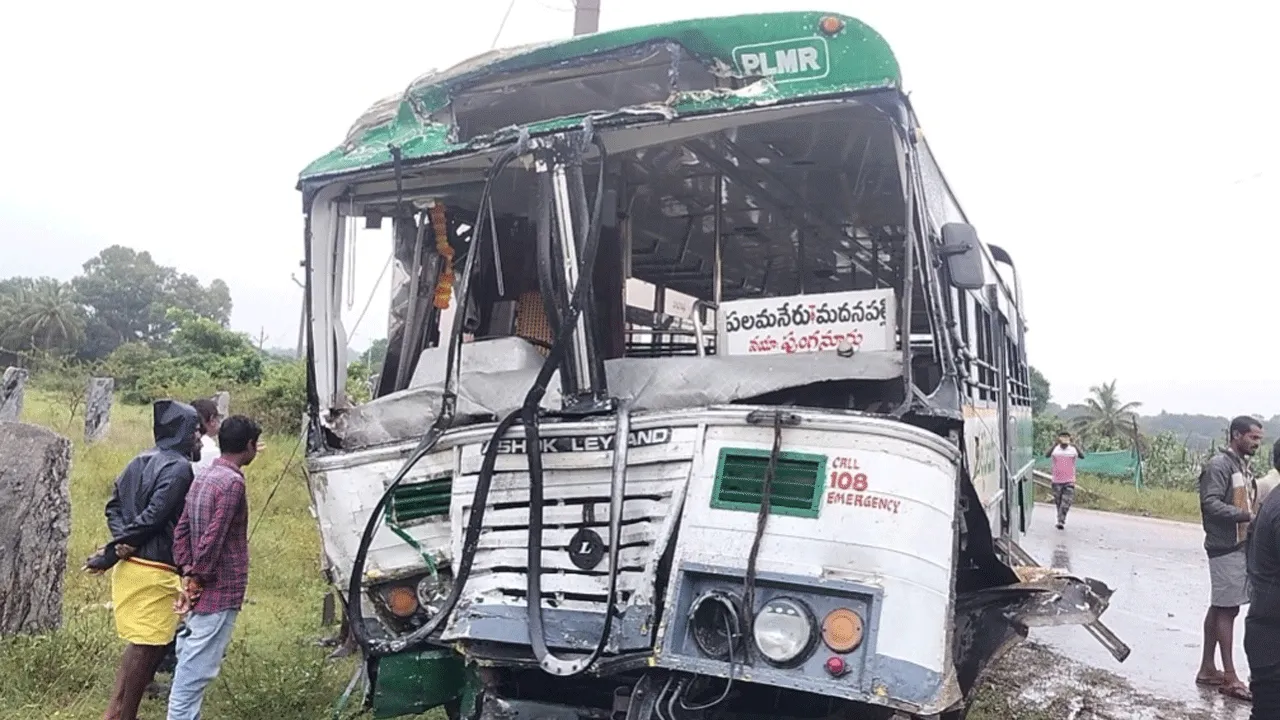 పుంగనూరు సమీపంలోని గూడూరుపల్లె వద్ద మంగళవారం ఇసుక ట్రాక్టర్ను అధిగమించబోయి రెండు ఆర్టీసీ బస్సులు ఎదురెదురుగా ఢీకొన్నాయి.