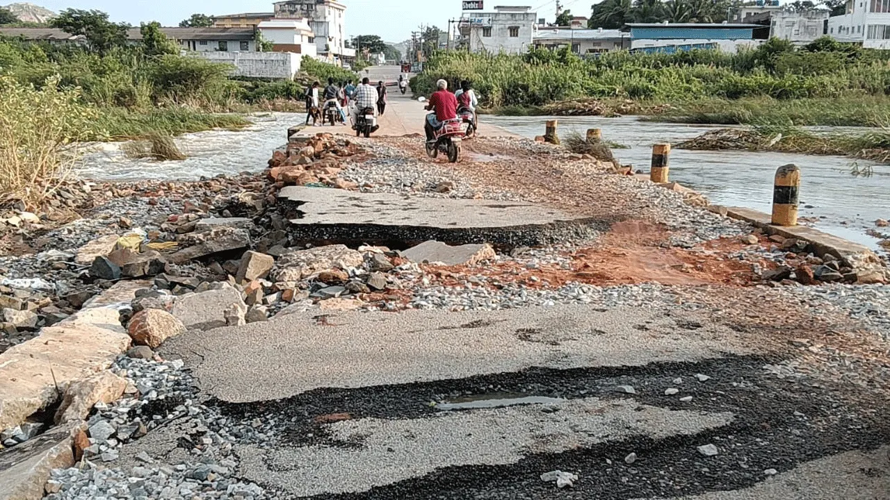 నగరి నుంచి కీళపట్టుకు వెళ్లే మార్గంలో కుశస్థలీ నదిపై ఉన్న లోతట్టు వంతెన ముచ్చటగా మూడోసారి శనివారం కొట్టుకుపోయింది. కృష్ణాపురం రిజర్వాయర్లో నీరు అధికం కావడంతో నీటిని కిందకు విడుదల చేశారు. దీంతో నదిలో వరద ఉధృతి ఎక్కువై నదిపై ఉన్న లోతట్టు వంతెన కొట్టుకుపోయింది.
