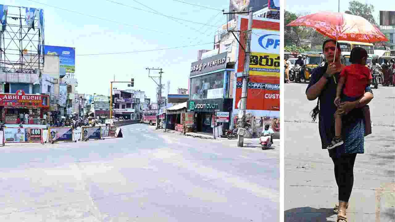 చిత్తూరు కలెక్టరేట్, మార్చి 7 (ఆంధ్రజ్యోతి): మార్చి తొలివారంలోనే ఎండలు మండుతున్నాయి. వడగాడ్పులూ మొదలయ్యాయి. మరో మూడునెలలు తీవ్రమైన వడగాడ్పులు వీస్తాయన్న వాతావరణ నిపుణుల హెచ్చరికలు ఆందోళన కలిగిస్తున్నాయి. అనేకచోట్ల పగటి ఉష్ణోగ్రతలు 36 నుంచి 39.1 డిగ్రీల వరకు నమోదయ్యాయి. జిల్లాలో అత్యధికంగా తవణంపల్లెలో 39.1, అత్యల్పంగా రామకుప్పంలో 33.7 డిగ్రీల ఉష్ణోగ్రతలు నమోదయ్యాయి. మండలాలవారీగా.. గంగవరంలో 38.6, పులిచెర్లలో 38.1, చిత్తూరు, గుడిపాల, నగరిలో 38, నిండ్ర, శ్రీరంగరాజపురంలో 37.7, ఐరాల, గుడుపల్లె, శాంతిపురంలో 37.2, గంగాధరనెల్లూరులో 37.1, రొంపిచెర్లలో 36.8, వి.కోటలో 36.7, చౌడేపల్లె, పాలసముద్రం, విజయపురంలో 36.4, పెద్దపంజాణిలో 36.3, యాదమరిలో 36.2, బంగారుపాళ్యంలో 35.9, కుప్పం, పూతలపట్టులో 35.6, పెనుమూరులో 35.3, సదుం, వెదురుకుప్పంలో 35.1, సోమలలో 35, పలమనేరులో 34.9, బైరెడ్డిపల్లెలో 34.5, కార్వేటినగరంలో 34.3, పుంగనూరులో 34.2 డిగ్రీల ఉష్ణోగ్రతలు నమోదయ్యాయి.