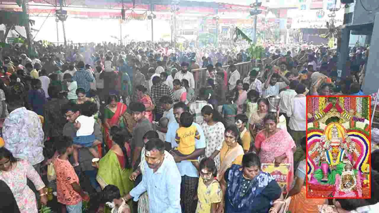 తిరుపతి(నేరవిభాగం): తాతయ్యగుంట గంగమ్మ జాతర మంగళవారం జరగనుంది. డీఎస్పీ భక్తవత్సలం పర్యవేక్షణలో 320 మంది పోలీసులు, డాగ్, బాంబు స్క్వాడ్లను ఏర్పాటు చేశారు. ముగ్గురు అదనపు ఎస్పీలు, ఎనిమిది మంది డీఎస్పీలు, 20 మంది సీఐలు, 50 మంది ఎస్ఐలు, 240 మంది ఏఎ్సఐలు, హెడ్ కానిస్టేబుళ్లు, పోలీసులు, హోంగార్డులు బందోబస్తు విధుల్లో ఉంటారు. ఆలయంలోకి వెళ్లే ప్రతి ఒక్కరినీ ప్రధాన ద్వారం వద్ద మెటల్ డిటెక్టర్లతో తనిఖీ చేసి అనుమతించనున్నారు. క్యూలలో తొక్కిసలాట, తోపులాట జరగకుండా మూడు విభాగాలుగా విభజించారు. అనుమానితులు, పాత నేరస్థులు, చైన్ స్నాచర్లు, జేబు దొంగలపై ప్రత్యేక దృష్టి సారించనున్నారు. ఇప్పటికే 26 సీసీ కెమెరాలు, ఫింగర్ ప్రింట్ స్కానర్ ఏర్పాటు చేశారు.