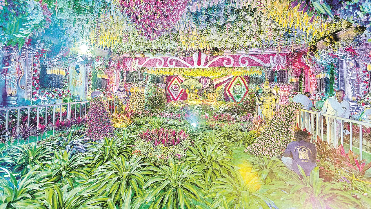 రంగనాథస్వామి ఆలయ సెట్టింగులో కొలువుదీరిన ఉత్సవర్లు