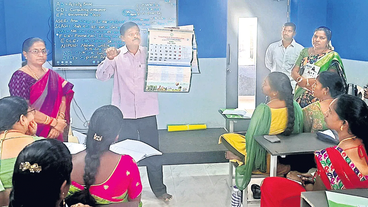 మెగా డీఎస్సీ ద్వారా ఉపాధ్యాయ ఉద్యోగాలకు ఎంపికైన అభ్యర్థులను నిజమైన ఉపాధ్యాయులుగా పూర్తిస్థాయిలో తీర్చిదిద్దేలా రాష్ట్ర ప్రభుత్వం వృత్తి శిక్షణా కార్యక్రమాన్ని రూపొందించింది. బోధన, అభ్యసన అంశాల్లో శిక్షణ ఇప్పిస్తోంది. విజయవాడ నుంచి వచ్చిన రిసోర్స్ పర్సన్లు 10 రోజులపాటు (ఈనెల 10వ తేదీ వరకు) శిక్షణ తరగతులను నిర్వహించనున్నారు. ఇందులో భాగంగా నూతన ఉపాధ్యాయులు మానసిక ఒత్తిడిని జయించేందుకు ఉదయం 6-7 గంటల వరకు యోగా, ఆసనాలపై శిక్షణ ఇస్తున్నారు. 7-8 గంటలమధ్య వ్యక్తిత్వ వికాసంకు సంబంధించిన అంశాలను బోధిస్తున్నారు. విద్యార్థి సమగ్ర మూర్తిమత్వం, విద్యార్థుల్లో నైతికత పెంపొందించడం, స్థిరమైన జీవితాన్ని ప్రోత్సహించడం, సమాజంపై అవగాహన కల్పిండం తోపాటు విద్యార్థి శారీరక అభివృద్ధి, మేధోభివృద్ధి, భాషాభివృద్ధి, సామాజిక సాంస్కృతిక కళాభివృద్ధిని పెంపొందించడానికి అవసరమైన నైపుణ్యాలపై అవగాహన కల్పిస్తున్నారు. 9 నుంచి సాయంత్రం 5 గంటల వరకు రాష్ట్ర విద్యాశాఖ ఎస్ఈఆర్టీ రూపొందించిన బోధనా విధానాలకు సంబంధించిన పుస్తకాలను, ఎప్ఎల్ఎన్ విధనాలు, టీఏఆర్ఎల్ విధానాలకు సంబంఽధించిన అంశాలపై శిక్షణ ఉంటోంది. బోధనా అభ్యసన సామగ్రిని తయారు చేయించడం, వాటి ఆధారంగా సులభ బోధన ఎలా చేయాలనే అంశాలపై శిక్షణ ఇస్తున్నారు. ఉపాధ్యాయులుగా పాఠశాలల్లో నిర్వహించాల్సిన రిజిస్టర్లు, రికార్డులు, పాఠ్య, బోధన, తరగతి నిర్వహణ, తల్లిదండ్రుల సమావేశాలు, మధ్యాహ్న భోజన పథకాల నిర్వహణ, పాఠశాల పరిశుభ్రత, పాఠశాలల్లో నిర్వహించాల్సిన వివిధ కార్యక్రమాలకు సంబంధించిన విషయాలతో సమగ్రంగా ఈ వృత్తిపరమైన శిక్షణ సాగుతోంది. ఈ శక్షణా కార్యక్రమంతో నూతన ఉపాధ్యాయులు సరికొత్తగా ప్రభావవంతమైన ఉపాధ్యాయులుగా అవతరించనున్నారు. అనంతరం వీరికి మళ్లీ వేసవి సెలవుల్లో రెండో దఫా శిక్షణ ఇవ్వనున్నారు.