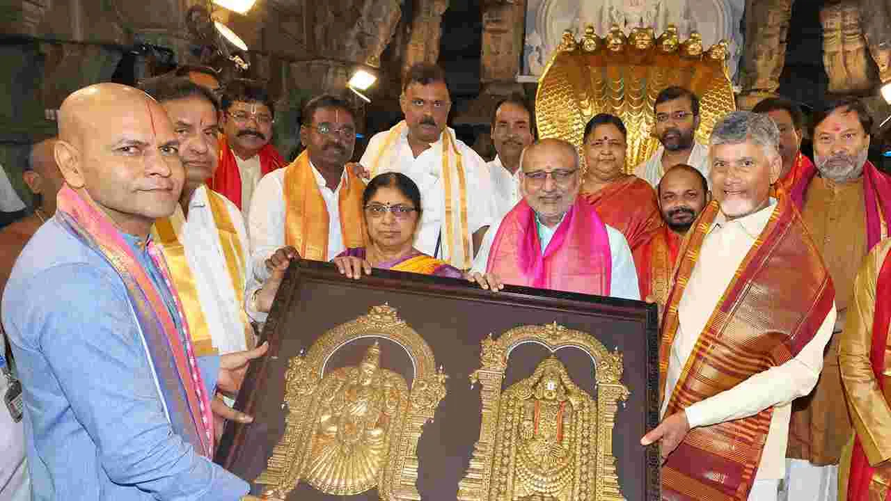 ఉపరాష్ట్రపతి సీపీ రాధాకృష్ణన్, సీఎం చంద్రబాబు నాయుడు గురువారం ఉదయం గంటపాటు తిరుమల ఆలయంలో గడిపారు. ఉదయం 8.35 గంటలకు మహద్వారం నుంచి ఆలయప్రవేశం చేశారు. గర్భాలయంలోని శ్రీవారిని దర్శించుకుని 9 గంటలకు రంగనాయక మండపానికి చేరుకున్నారు.