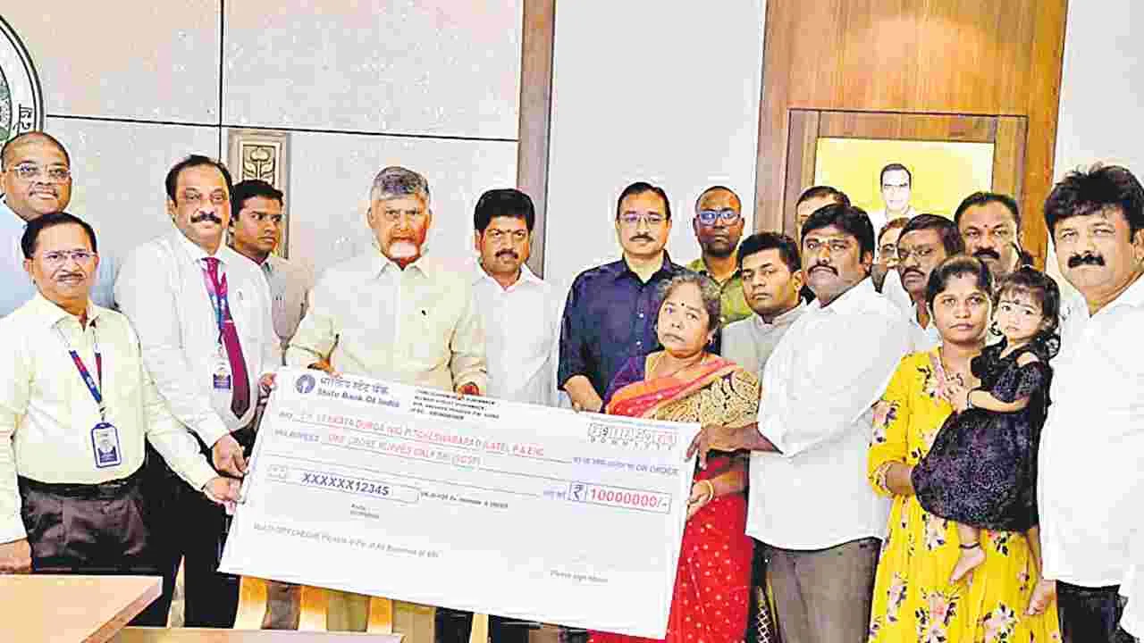 చెక్కు అందజేసిన ముఖ్యమంత్రి చంద్రబాబు