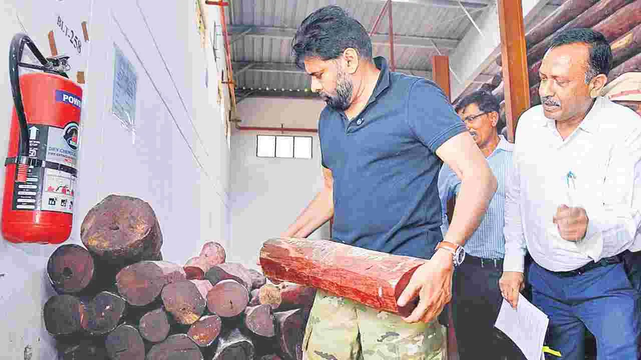 అటవీ శాఖ గోదాముల్లోని ఎర్రచందనం దుంగల పరిశీలన