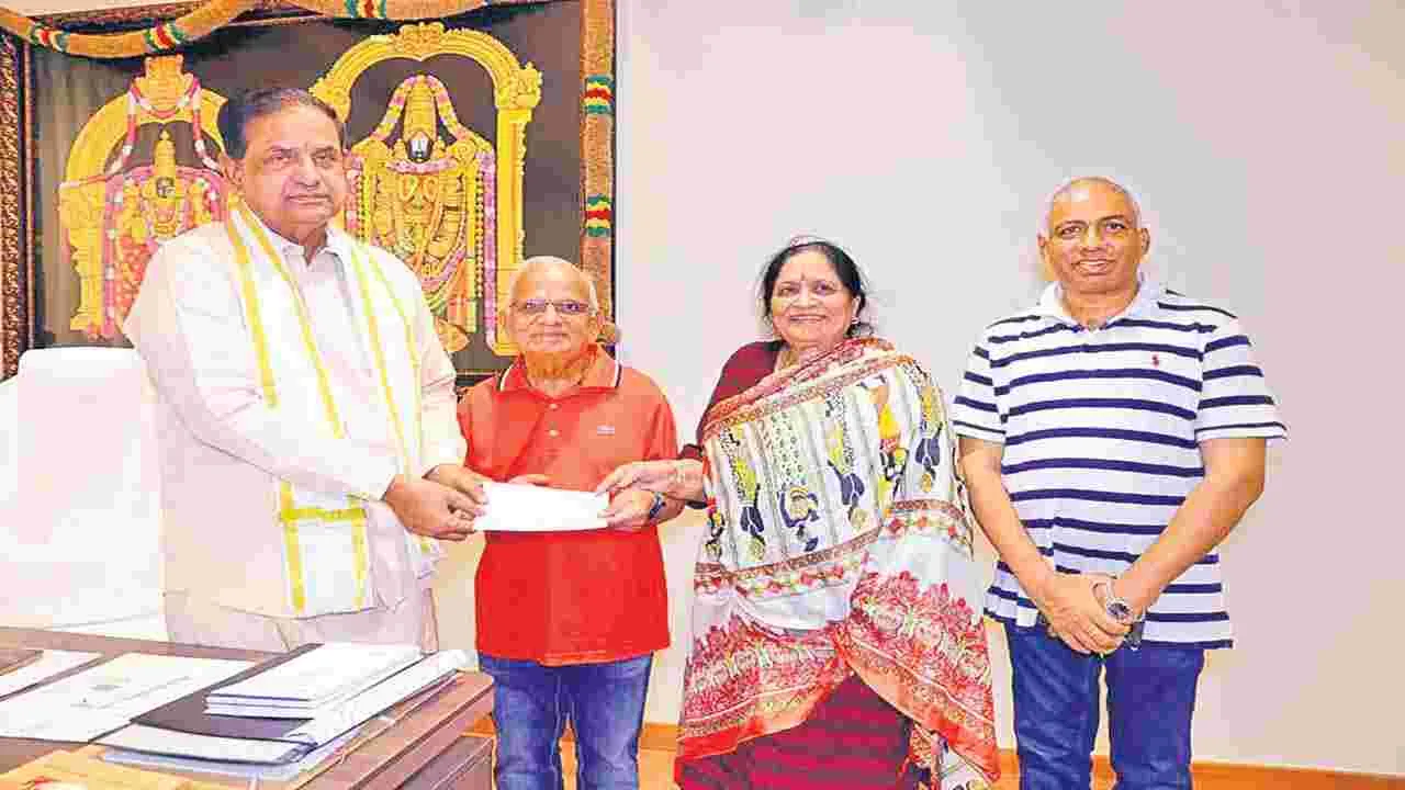 అమెరికాలో నివసించే వేదాల రంగనాథ్, కృష్ణకుమారి దంపతులు టీటీడీకి రూ.11 లక్షల విరాళం అందించారు. ఇందులో రూ.10 లక్షలు అన్నప్రసాదానికి, రూ.లక్ష గోసంరక్షణ ట్రస్టుకి ఇవ్వాలని కోరారు.