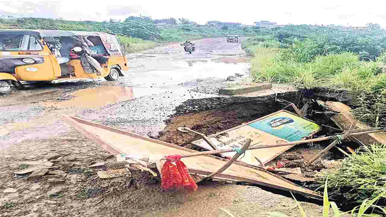 దెబ్బతిన్న బురద గెడ్డ అప్రోచ్ రోడ్డు
