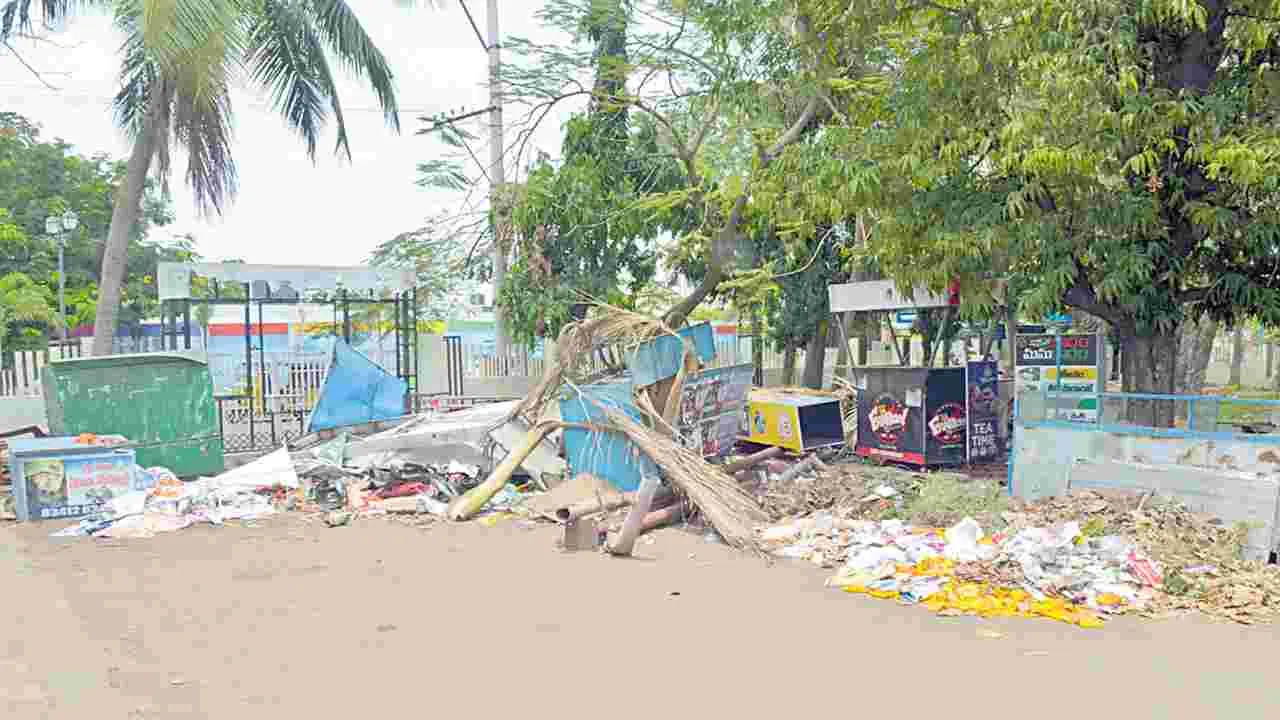 ఆక్రమణల తొలగింపు వ్యర్ధాలతో నిండిపోయిన రాజమహేంద్రవరం నగరపాలక సంస్థ ప్రాంగణం