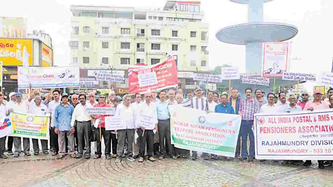 రాజమహేంద్రవరంలో పెన్షనర్ల నిరసన