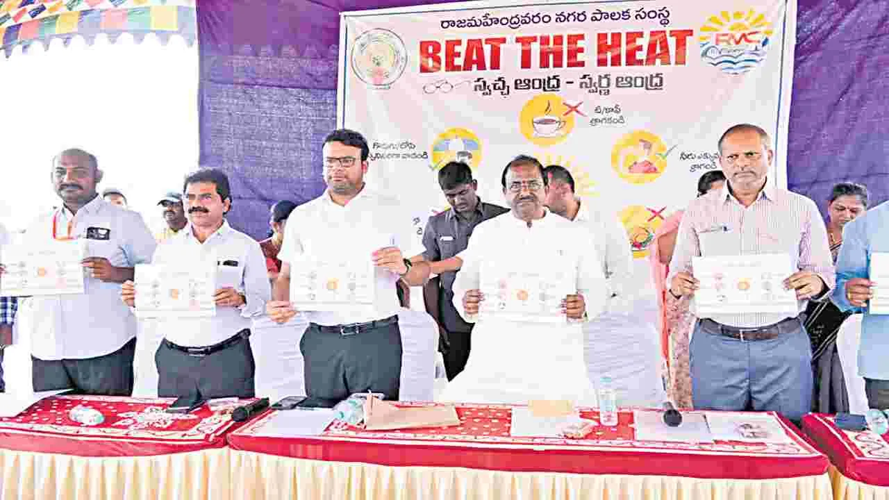 రాజమహేంద్రవరం సిటీ, మే 17( ఆంధ్రజ్యోతి): మొక్కలు పెంచి వాటిని వృక్షాలుగా ఎదగనిచ్చి పచ్చదనాన్ని పెంపొందించుకోవాలని, దీనిని ప్రతిఒక్కరూ బాధ్యతగా తీసుకోవాలని జిల్లా జాయింట్ కలెక్టర్ ఎస్.చిన్నరాముడు పిలుపునిచ్చారు. స్వచాంధ్ర-స్వర్ణాంధ్ర కార్యక్రమంలో భాగంగా రాజమహేంద్రవరంలోని 16వ డివిజన్లో శనివారం బిట్ ద హీట్ కార్యక్రమం నిర్వహించారు. ఈ సందర్భంగా వారు తొలుత బ్రోచర్ ఆవిష్కరించారు. అనంతరం మునిసిపల్ కమిషనర్ కేతన్గార్గ్ మాట్లాడుతూ స్వచ్ఛాంధ్ర -స్వర్ణాంధ్ర కార్యక్రమాన్ని నగరంలో పటిష్టంగా అమలు చేస్తున్నామన్నారు. ఈ మూడో శనివారం బీట్ ద హీట్ క్యాంపెయిన్ నిర్వహించుకున్నట్టు చెప్పారు. వేసవి ఎండల రీత్యా తీసుకోవాల్సిన జాగ్రత్తలపై ప్రజలకు అవగాహన కల్పించడమే కార్యక్రమ ప్రధాన ఉద్ధేశమన్నారు. నగర వ్యాప్తంగా ఇప్పటికే 40 చోట్ల చలివేంద్రాలు ఏర్పాటు చేసినట్టు వెల్లడించారు. రాజమహేంద్రవరంలో పాటు పది పంచాయతీలను కలిపి మొత్తం 6560 రెయిన్ వాటర్ హార్వె స్టింగ్(ఇంకుడు గుంతలు) నిర్మాణాలు చేపట్టామన్నారు. పర్యావరణ పరిరక్షణ కాలుష్య రహిత సమాజ నిర్మాణం కోసం ప్రతిఒక్కరు బాధ్యతగా ఒక్క మొక్కను దత్తత తీసుకుని విరివిరిగా మొక్కలు నాటాలని పిలుపునిచ్చారు. అలాగే అర్బన్ హెల్త్ సెంటర్లో ఉన్న ఖాళీ ప్రదేశంలో చుట్టూ కాంపౌండ్ వాల్ నిర్మాణానికి రూ.25 లక్షలు నిధులు మంజూరైనట్టు కమిషనర్ తెలిపారు. జాయింట్ కలెక్టర్ మాట్లాడుతూ వేసవి దృష్ట్యా వడదెబ్బ తగలకుండా ప్రజలందరు జాగ్రత్తలు పాటించాలన్నారు. పశువులు తాగునీటికి ఇబ్బంది పడకుండా మానవత్వంతో ఆలోచించి ఇంటి పరిసరాల్లో వాటి కోసం ప్రత్యేకంగా నీటితొట్టెలను ఏర్పాటుచేయాలన్నారు. ఎమ్మెల్సీ సోము మాట్లాడుతూ పరిసరాల పరిశుభ్రత ప్రతిఒక్కరి బాధ్యత అని, మొక్కలు నాటి వాటిని పరిరక్షించుకోవాలన్నారు. అనంతరం స్థానికులతో కలిసి వారంతా మొక్కలు నాటారు. కార్యక్రమంలో అడిషనల్ కమిషనర్ పీవీ రామలింగేశ్వర్, సెక్రటరీ శైలజావల్లి, ఎస్ఈ ఎంసీహెచ్ కోటేశ్వరరావు, ఎంహెచ్వో డాక్టర్ వినూత్న, యానపు యేసు, వరప్రసాద్ పాల్గొన్నారు.
