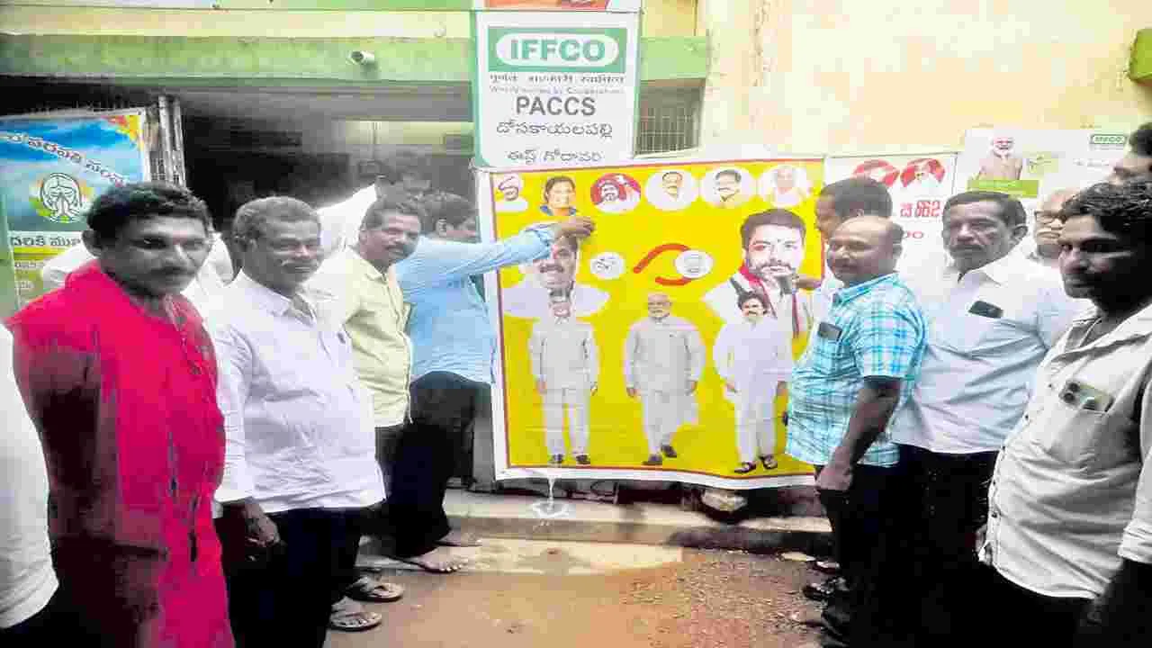కోరుకొండ, సెప్టెంబరు 23(ఆంధ్రజ్యోతి): కూట మి ప్రభుత్వంలో ప్రాథమిక వ్యవసాయ పరపతి సంఘాల ద్వారా ఒక్కో రైతుకు ఎకరానికి రూ.8 లక్షలు చొప్పున రూ.15 లక్షల వరకు రుణాలు మం జూరు చేస్తున్నామని చైర్మన్ గంగాధర్ పేర్కొన్నారు. మండలంలోని దోసకాయలపల్లి సొసైటీలో రైతు మహాజన సభ మంగళవారం జరిగింది. ఈ సందర్భంగా సొసైటీ సీఈవో కొయిడాల అప్పలరాజు సొసైటీ నివేదికను వివరించారు. సొసైటీలో 562 మంది సభ్యులుగా ఉన్నారని వారి వాటా ధనం రూ.1,34,74,000 ఉందన్నారు. టర్నోవర్ రూ.13.83 కోట్లు అని అన్నారు. ఇటీవల 15మంది రైతులకు కొత్తగా రూ.83,3 3,000 రుణాలు అందజేశామన్నారు. 64 మెట్రిక్ టన్నుల యూరియా రైతులకు అందజేశామన్నారు. 2023-24లో సక్రమంగా రుణాలు చెల్లించిన 191 మంది రైతులకు 3శాతం వడ్డీ రాయితో రూ.2,97,0 00 అందజేశామన్నారు. ప్రస్తుతం వరి రైతులకు యూరియా అందజేశామని, పండ్ల తోటలకు కూడా ఇవ్వాలని కోరుతున్నారని స్టాక్ వచ్చిన వెంటనే అందజేస్తామన్నారు.ఇదిలా ఉండగా ఎన్నికల హామీ మేరకు కూటమి ప్రభుత్వం రైతుల ఖాతాల్లో నగదు జమ చేసినందుకు, యూరియాను సబ్సిడీపై సకాలంలో అందజేసినందుకు రైతులు.. ప్రధాని మోదీ, సీఎం చంద్రబాబు, డిప్యూటీ సీఎం పవన్కల్యాణ్, ఎమ్మెల్యే బత్తుల బలరామకృష్ణ,రుడా చైర్మన్ బొడ్డు వెంకటరమణలతో ఉన్న ఫ్లెక్సీకి పాలాభిషేకం చేశారు. కార్యక్రమాల్లో టీడీపీ నాయకుడు మార్ని రాము, సొసైటీ డైరెక్టర్లు కర్రి రాజారావు, గల్లా శ్రీనివాసరావు, స్టాప్ అసిస్టెంట్ కాకర సత్యనారాయణ మూర్తి, రైతులు మార్ని మధుసూదనరావు, అగ్రపు ఆదినారాయణ, సూదిన సుబ్బారావు, సర్పంచ్ తారా రాంబాబు, పచ్చిపాల సూర్యారావు, రాము, మల్లిన వీరభాస్కర చౌదరి పాల్గొన్నారు.
