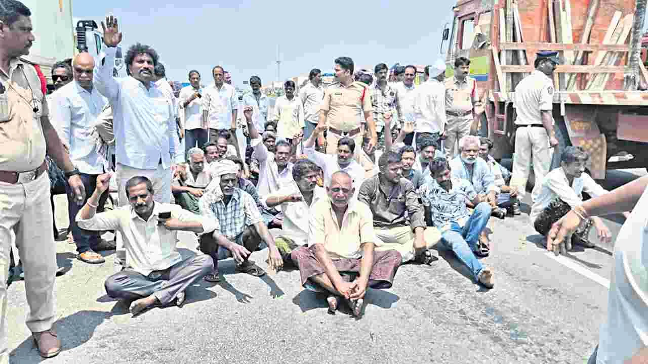 జాతీయ రహదారిపై బైఠాయింపు