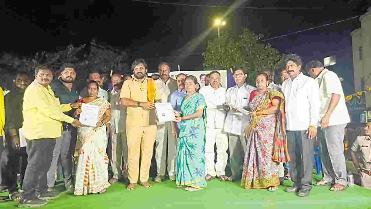 వాంబే గృహ లబ్ధిదారులకు పట్టాల పంపిణీలో ఎమ్మెల్యే వాసు