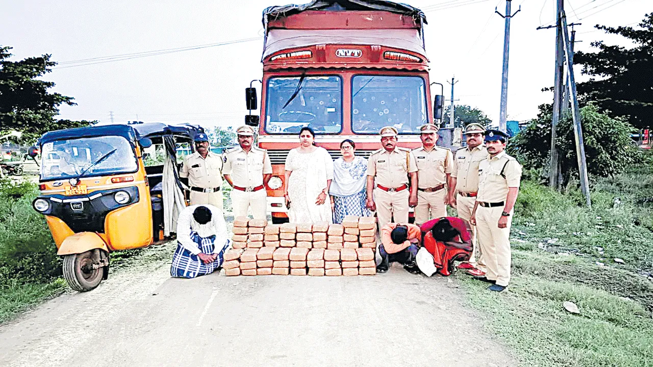 కొవ్వూరు, అక్టోబరు 26 (ఆంధ్రజ్యోతి): ఒడిశా ప్రాంతం నుంచి కోయంబత్తూరుకు తర లిస్తున్న 172 కిలోల గంజాయిని స్వాధీనం చేసుకున్నట్టు తూర్పు గోదావరి జిల్లా ప్రొహిబిషన్ అండ్ ఎక్సైజ్ అధికారి సీహెచ్.లావణ్య తెలిపారు. కొవ్వూ రు గామన్ వంతెన దిగువన దొమ్మేరు రోడ్డులో ఆటో నుంచి లారీలోకి గంజాయి ఎక్కి స్తున్నారని కొవ్వూరు ఎక్సైజ్ సీఐ జి.సత్యనారాయణకు వచ్చిన సమాచారం మేరకు ఆదివారం రాత్రి ఎక్సైజ్ అధికారులు వాహన తనిఖీలు చేపట్టారు. గంజాయి తీసుకువచ్చిన ఆటో, రవాణా చేస్తున్న లారీలను సీజ్ చేసి 86 ప్యాకెట్లలో ఉన్న 172 కిలోల గంజాయిని స్వాధీనం చేసుకున్నారు. ఒరిస్సా సరిహద్దు ప్రాంతాల నుంచి డొం కరాయికి చెందిన ఆటోలో డ్రైవర్ గంజాయిని కొవ్వూరు తీసుకువచ్చాడు. ఇక్కడి నుంచి కొయంబత్తూరుకు తరలించేందుకు లారీలో ఎక్కిస్తుండగా డొంకరాయికి చెందిన ఆటో డ్రైవర్, తమిళనాడుకు చెందిన లారీ డ్రైవర్, క్లీనర్లను అరెస్టు చేశామని ప్రొహిబిషన్ అ ండ్ ఎక్సైజ్ అధికారి లావణ్య తెలిపారు. తనిఖీల్లో ఎక్సైజ్ ఎస్ఐలు డి.అప్పారావు, రవిశంకర్, ఐఎన్ఎస్.బాలాజీ, సిబ్బంది ఉన్నారు.