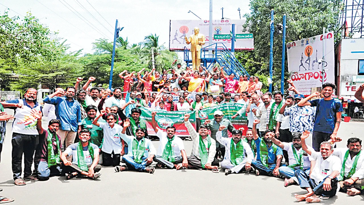 సమాన పనికి సమాన వేతనం ఇవ్వా లని 45రోజులగా నిరసన దీక్షలు చేస్తున్న మునిసిపల్ ఇంజనీరింగ్ కార్మికులు ఆదివారం కార్పొరేషన్ కార్యాలయం ఎదురుగా ఉన్న అంబేడ్కర్ విగ్రహం వద్ద ధర్నా చేశారు. కార్మికులు వారి కుంటుంబాల తో కలిసి నిరసన చేపట్టారు.