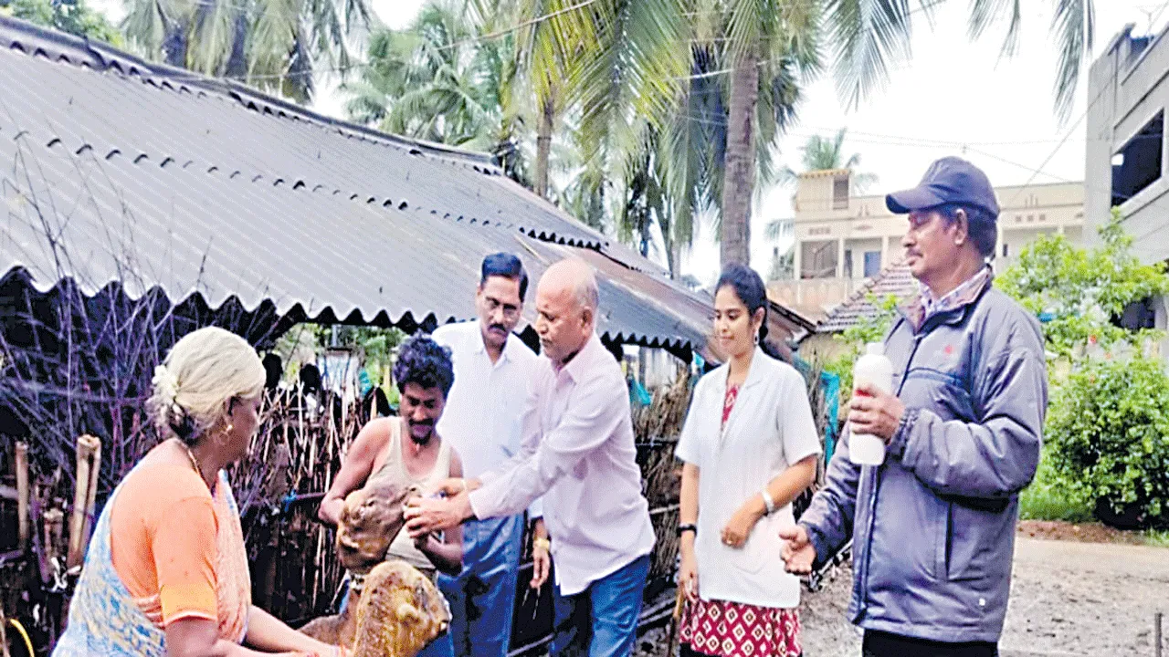 ఆత్రేయపురం, జూన్ 26(ఆంధ్రజ్యోతి): జిల్లాలో గొర్రెలు, మేకలకు నట్టల నివారణ వ్యాక్సిన్ అందించే కార్యక్రమం నిర్వహిస్తున్నట్టు పశుసంవర్థక శాఖ జిల్లా అధికారి కె.వెంకట్రావు పేర్కొన్నారు. గురువారం ర్యాలిలో గొర్రెలు, మేకలకు వ్యాక్సిన్ అందించే కార్యక్రమానికి శ్రీకారం చుట్టారు. ప్రభుత్వం వర్షాకాలంలో గొర్రెలు, మేకలకు వ్యాధులు ప్రబలకుండా నివారణ చర్యలు చేపట్టిందన్నారు. జిల్లా వ్యాప్తంగా అన్ని మండలాల్లో ఈ నెల 26 నుంచి వచ్చే 10వ తేదీ వరకూ 15 రోజులపాటు దీన్ని నిర్వహిస్తున్నామన్నారు. ర్యాలి గ్రామంలో 250 గొర్రెలు, మేకలను గుర్తించి నట్టల నివారణ వ్యాక్సిన్ అందిస్తున్నామన్నారు. పశువుల ఆసుపత్రిలో మందుల సైతం సిద్ధంగా ఉన్నాయన్నారు. కార్యక్రమంలో అసిస్టెంట్ డైరెక్టర్ ఉమామహేశ్వరెడ్డి, పశువైద్యాధికారిణి మౌనిక తదితరులు పాల్గొన్నారు.