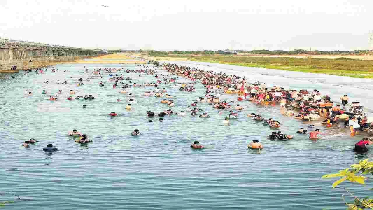 వేసవి కావ డంతో కాటన్బ్యారేజీ దిగువన మద్దూరు వద్ద ప్రతి రోజూ పెద్దలు.. చిన్నారులు కుటుం బాలతో సహా వచ్చి వందలాది మంది స్నానాలు ఆచరిస్తు న్నారు. ఇది ప్రమాదమని చెప్పినా జనం మాత్రం మాటవినడంలేదు.ఈ నేప థ్యంలో అధికారులు రంగంలోకి దిగారు. ఆయా ప్రదేశాల్లో హెచ్చరిక బోర్డులు ఏర్పాటు చేస్తున్నారు.