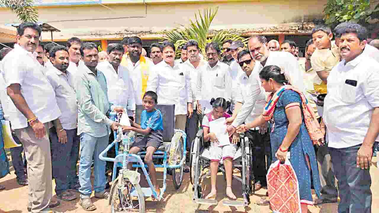 అభివృద్ధిని, సంక్షేమాన్ని మేళవించి సుపరిపాలన అం దించడమే కూటమి లక్ష్యమని ఎమ్మెల్యే నల్లమిల్లి రామకృష్ణారెడ్డి తెలిపారు. బలభద్రపురం ఉన్నత పాఠశాలలో బుధవారం ఆయన బిక్కవోలు, రం గంపేట, అనపర్తి మండల్లాలోని భవిత కేంద్రాల్లోని 36 మంది ప్రత్యేకావసరాల పిల్లలకు ఎస్ ఎస్ఏ ఆధ్వర్యంలో రూ.20 లక్షల విలువైన ఉపకరణాల పంపిణీ కార్యక్రమం నిర్వహించారు.