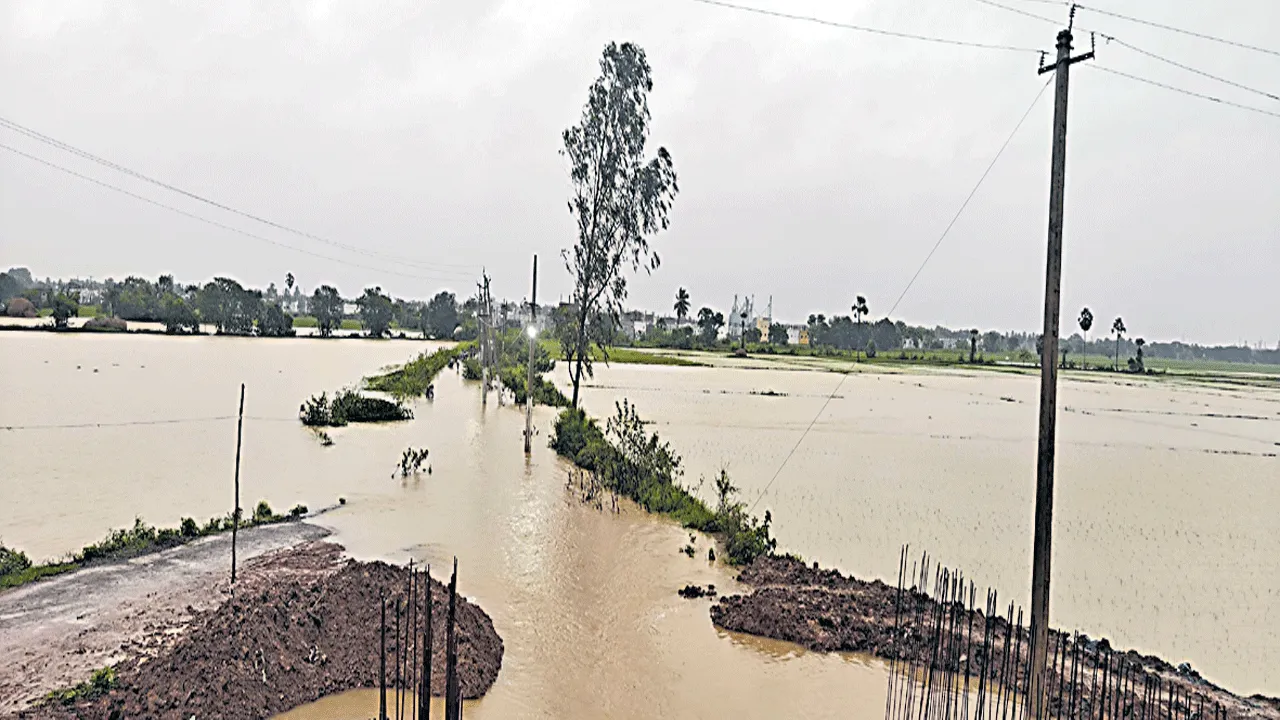 వరదనీటితో జిల్లాలోని 16మండలాల్లో 7,250 ఎకరాల్లో వరి పంటల మునక