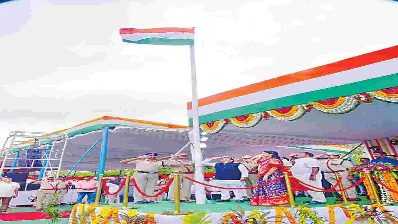 రాజమహేంద్రవరం, ఆగస్టు 15 (ఆంధ్ర జ్యోతి) : ఆంధ్ర ప్రదేశ్ను 2047 నాటికి స్వర్ణాంధ్రప్రదేశ్గా తీర్చిదిద్దడానికి సీఎం చంద్రబాబు ఆధ్వర్యంలో అడుగులు వేస్తున్నాం... అభి వృద్ధి సంక్షేమానికి సమ ప్రాధాన్యత ఇస్తున్నాం.. పీ4లో భాగంగా మార్గదర్శులతో బంగారు కుటుంబాలను అనుసం ధానిస్తూ పేదల అభ్యున్నతికి కృషి చేస్తున్నామని రాష్ట్ర పర్యాటక, సాంస్కృతిక, సినిమాటోగ్రఫీ శాఖ మంత్రి కం దుల దుర్గేష్ స్పష్టం చేశారు. 79వ స్వాతంత్య్ర దినోత్సవం సందర్భంగా ఆర్ట్స్ కాలేజీలో శుక్రవారం జాతీయ జెండా ఆవిష్కరించి మాట్లాడారు. ఎన్నికల్లో ఇచ్చిన హామీ మేరకు సూపర్ సిక్స్ పథకాలను వరుసగా అమలు చేస్తున్నామన్నా రు. ఇప్పటికే తల్లికి వందనం, అన్నదాత సుఖీభవ ఏడాదికి మూడు ఉచిత గ్యాస్ సిలిండర్లు, ఆర్టీసీలో మహిళలందరికీ ఉచిత ప్రయాణ పథకాలు అమలు చేశామన్నారు. యు వతకు 20 లక్షల ఉద్యోగాలు, రూ.3 వేల నిరుద్యోగ భృతి, ప్రతి మహిళకు రూ.1500 ఆర్థిక సహాయం వంటి వాటిని రానున్న రోజుల్లో అమలు చేస్తామని వెల్లడించారు. ఎన్టీఆర్ భరోసా కింద 17 కేటగిరీల్లో పింఛన్లు అందిస్తున్నా మ న్నా రు. జిల్లాలో ఐదు అన్న క్యాంటీన్లు నిర్వహిస్తున్నామన్నారు. జిల్లాను ప్రగతి పథంలో నడిపిస్తున్నామన్నారు.అన్నదాత సుఖీభవ పథకం కింద జిల్లాలో తొలి విడతగా లక్షా 14 వేల 991 మంది రైతులకు రూ. 57 కోట్ల 50 లక్షలు, పీఎం కిసాన్ కింద 20వ విడతలో లక్షా 3 వేల 834 మందికి రూ.20 కోట్ల 76 లక్షలు వారి బ్యాంక్ ఖాతాల్లో జమ చేసి నట్టు చెప్పారు. ఎన్టీఆర్ భరోసా పింఛన్ పథకం కింద 17 కేటగిరీల్లో 2 లక్షల 36 వేల 331 మందికి ప్ర నెలా 1న రూ. 103కోట్ల 26 లక్షలు పంపిణీ చేస్తున్నామన్నారు. విద్యాశాఖ ద్వారా డొక్కా సీతమ్మ మధ్యాహ్న బడి భోజనం అమలు చేస్తున్నా మన్నారు. జిల్లాలో అఖండ గోదావరి పథకం కింద రూ.94.44 కోట్లతో పలు అభివృద్ధి కార్యక్రమాలు చేపడుతు న్నామన్నారు. రాజానగరం మండలం కలవచర్లలో 104 ఎకరాల విస్తీర్ణంలో నిర్మించిన పారి శ్రామిక పార్కు త్వరలో ప్రారంభిస్తామని చెప్పారు. పుష్కరాలకు రుడా ద్వారా రూ.5.52 కోట్లతో రాజమహేంద్రవరంలో రోడ్లు, పార్కులు అభివృద్ధి చేస్తామన్నారు.జిల్లాలో గనుల శాఖ ద్వారా ఇప్పటి వరకూ 36 లక్షల 24 వేల టన్నుల ఇసుకను ప్రజలకు ఉచి తంగా సరఫరా చేసి రాష్ట్రంలోనే ప్రథమ స్థానంలో ఉన్నా మన్నారు.కలెక్టర్ ప్రశాంతి మాట్లాడుతూ ప్రణాళికాబద్ధంగా జిల్లా అభివృద్ధి చేస్తున్నా మన్నా రు.స్వాతంత్య్ర సమరయోధుల కుటుంబీకులను సత్కరిం చారు.కా ర్యక్రమంలో ఎమ్మె ల్యేలు గోరంట్ల బుచ్చయ్యచౌదరి, బత్తుల బల రామకృష్ణ, ఎమ్మెల్సీ సోము వీర్రాజు,జేసీ చిన్నరాము డు, ఎస్పీ డి.నరసింహకిశోర్ తదితరులు పాల్గొన్నారు.